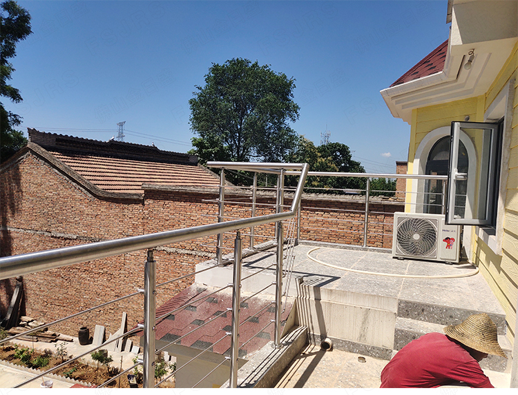 Lan can kính tùy chỉnh chải lan can ban công hàng rào thép không gỉ 304 cột tròn gắn bên cầu thang lan can