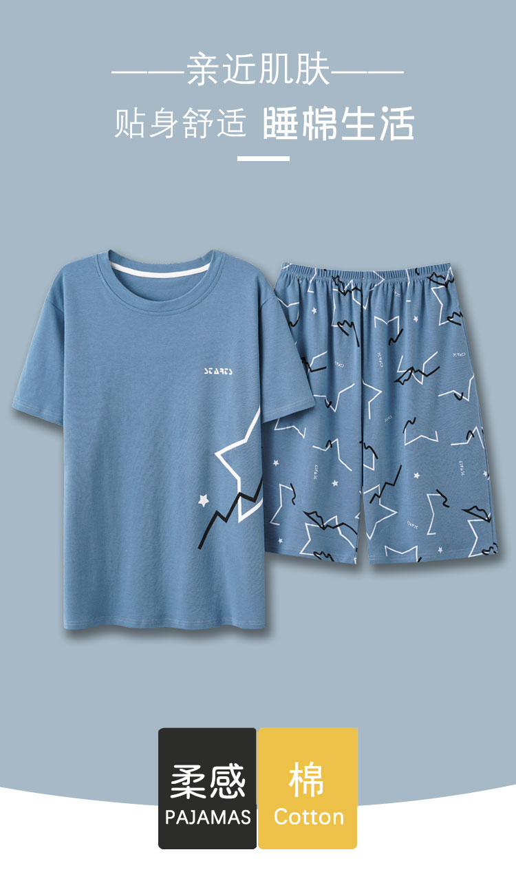 Langsha 2022 bộ đồ ngủ mới của nam giới mùa hè cotton mỏng ngắn tay quần đùi phục vụ tại nhà cho nam giới bộ đồ cỡ lớn mùa hè