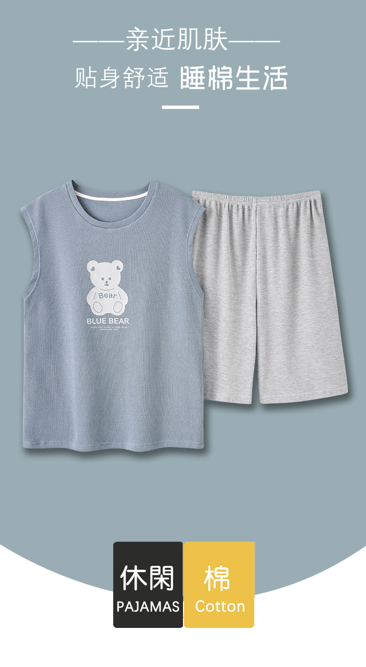 Langsha vest pyjama nam mùa hè cotton không tay quần short thanh niên phim hoạt hình nam mùa hè cotton mặc nhà