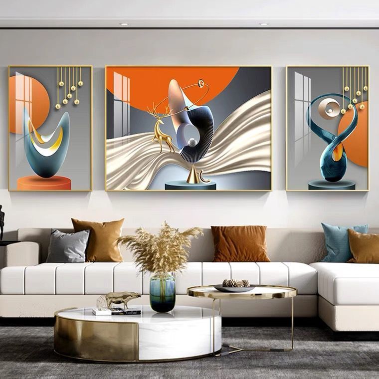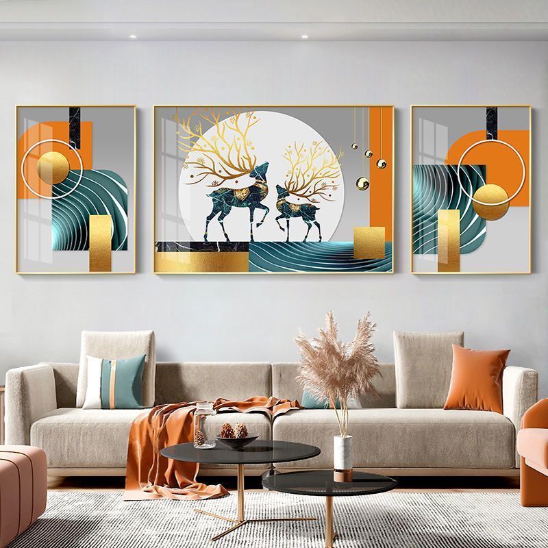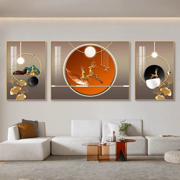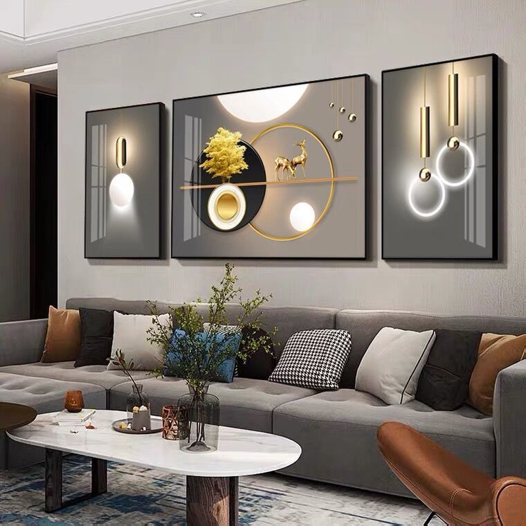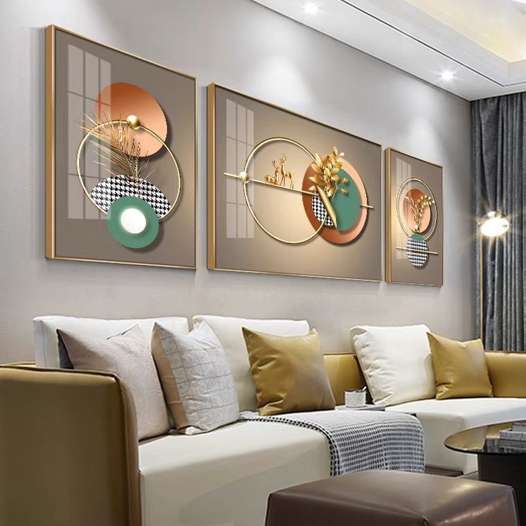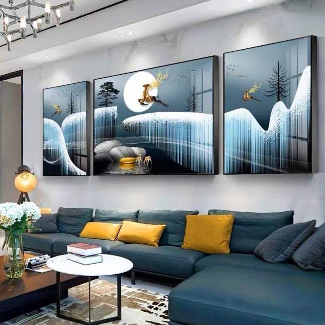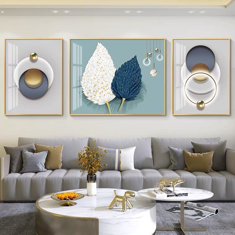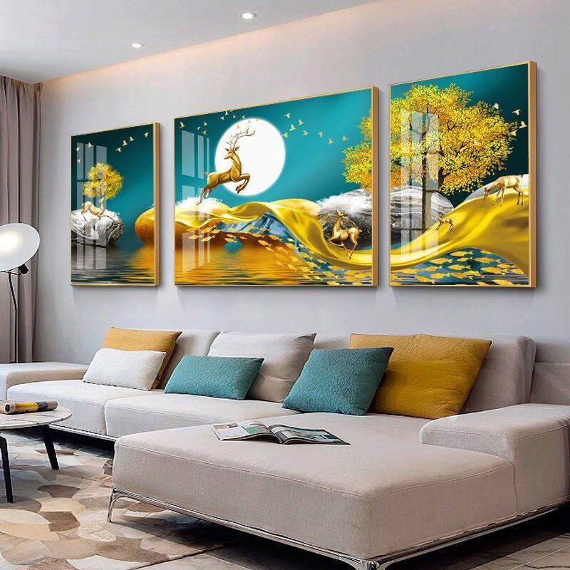 Lắp đặt trọn gói 2023 phòng khách mới sơn trang trí nền sofa treo tường tranh treo tường bức tranh tường ba Đẹp Bắc Âu tranh sứ pha lê sang trọng