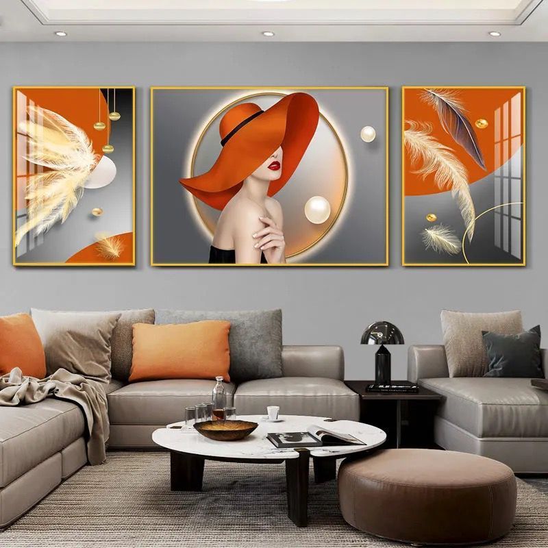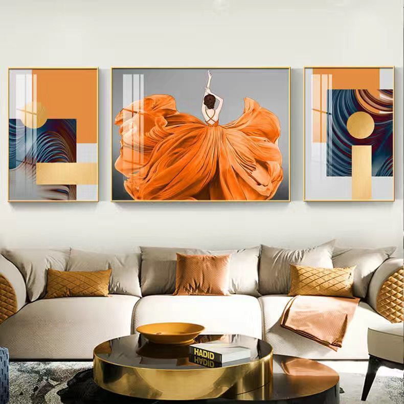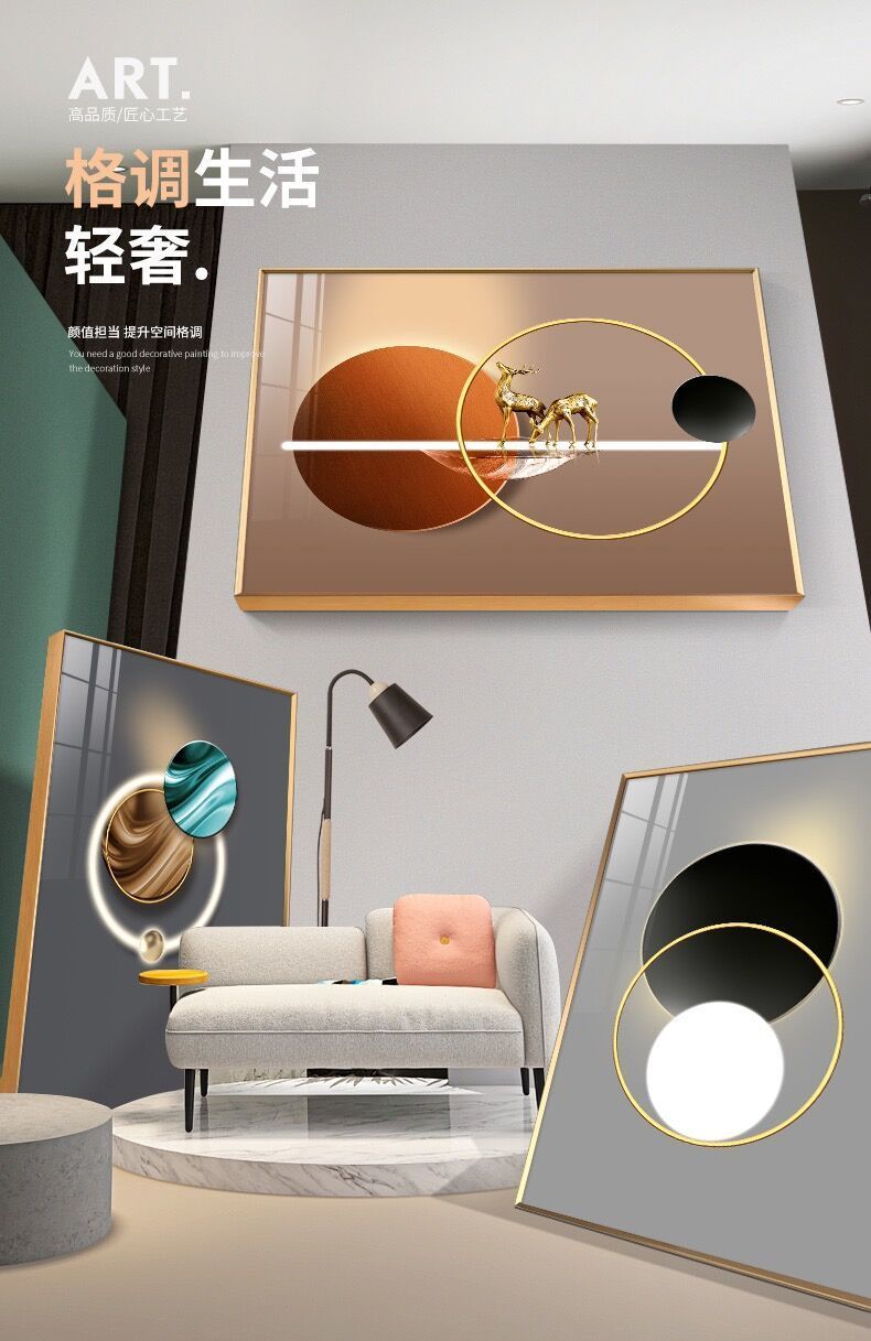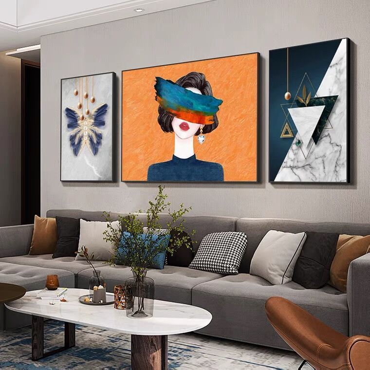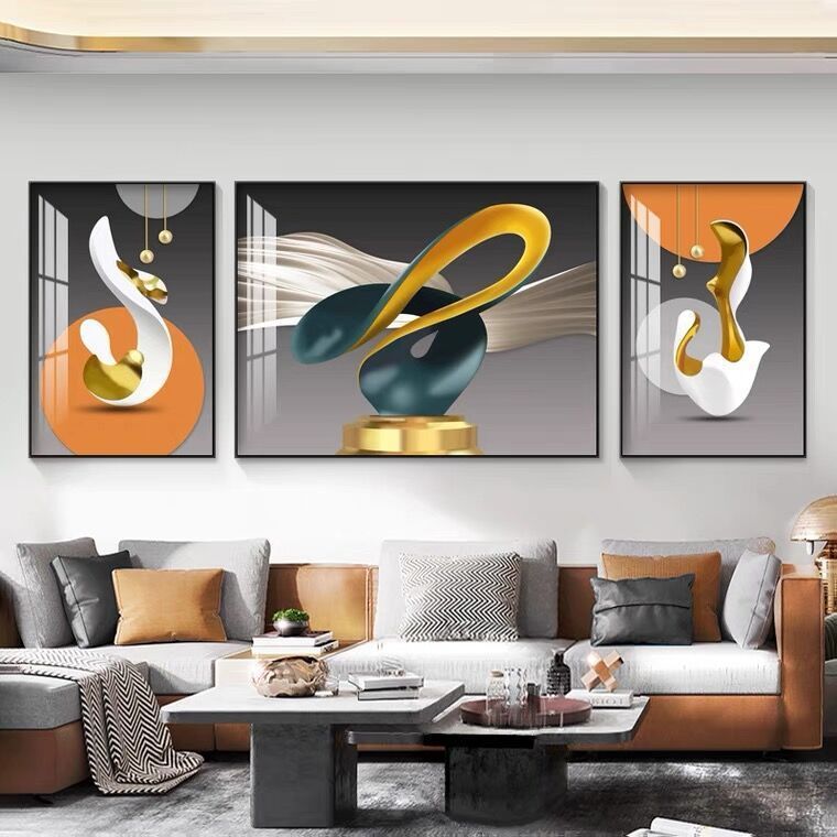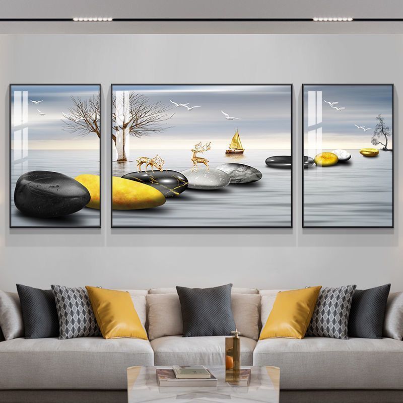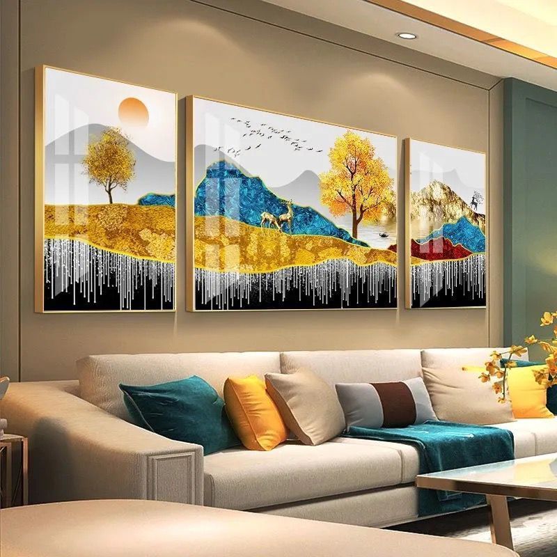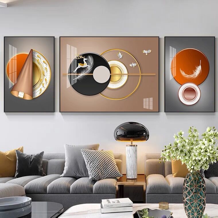 Lắp đặt trọn gói 2023 phòng khách mới sơn trang trí nền sofa treo tường tranh treo tường bức tranh tường ba Đẹp Bắc Âu tranh sứ pha lê sang trọng