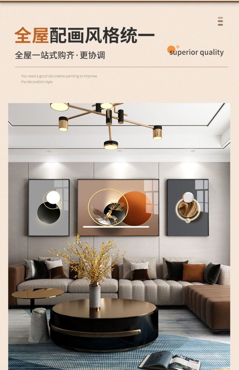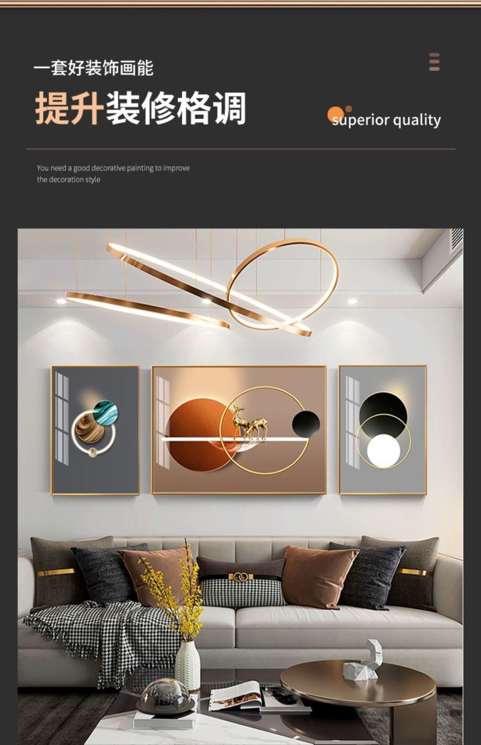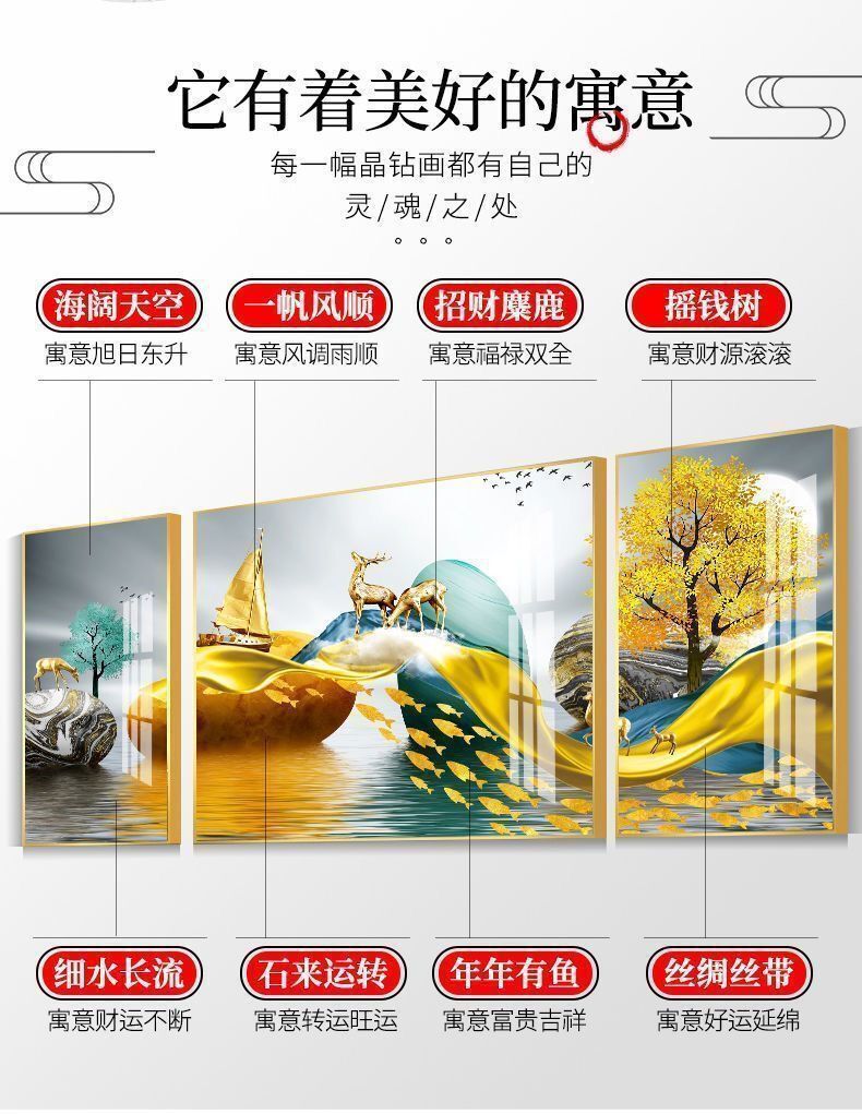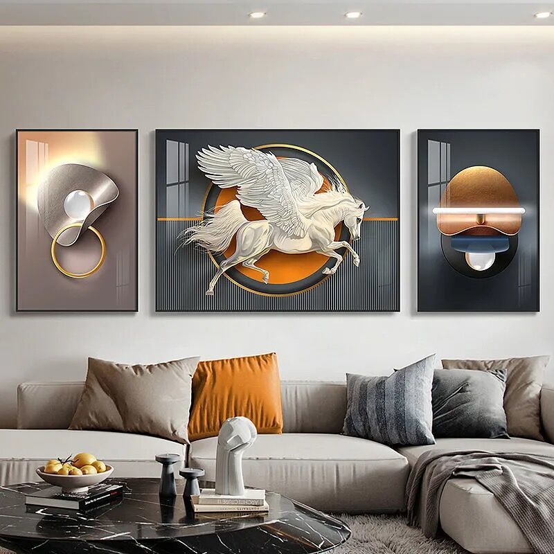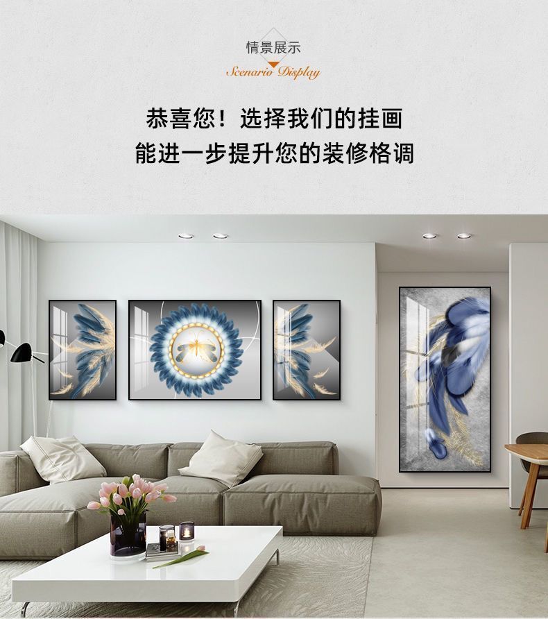 Lắp đặt trọn gói 2023 phòng khách mới sơn trang trí nền sofa treo tường tranh treo tường bức tranh tường ba Đẹp Bắc Âu tranh sứ pha lê sang trọng
