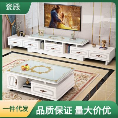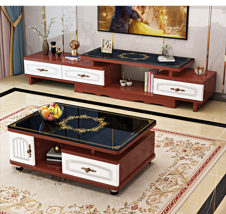 Lắp đặt trọn gói tủ tivi phong cách châu Âu kết hợp bàn cà phê phòng khách chung cư nhỏ kính cường lực bàn trà hiện đại tối giản có thể thu vào