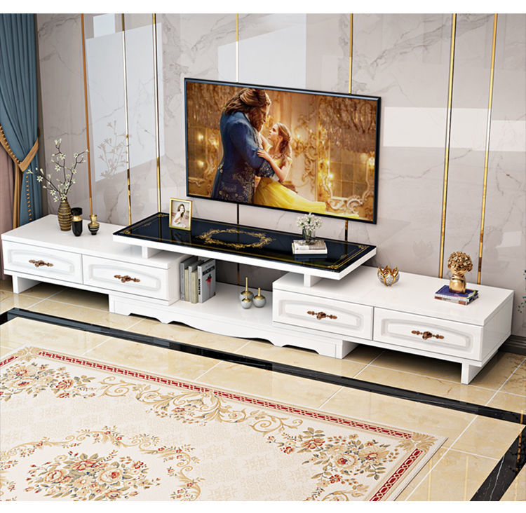 Lắp đặt trọn gói tủ tivi phong cách châu Âu kết hợp bàn cà phê phòng khách chung cư nhỏ kính cường lực bàn trà hiện đại tối giản có thể thu vào