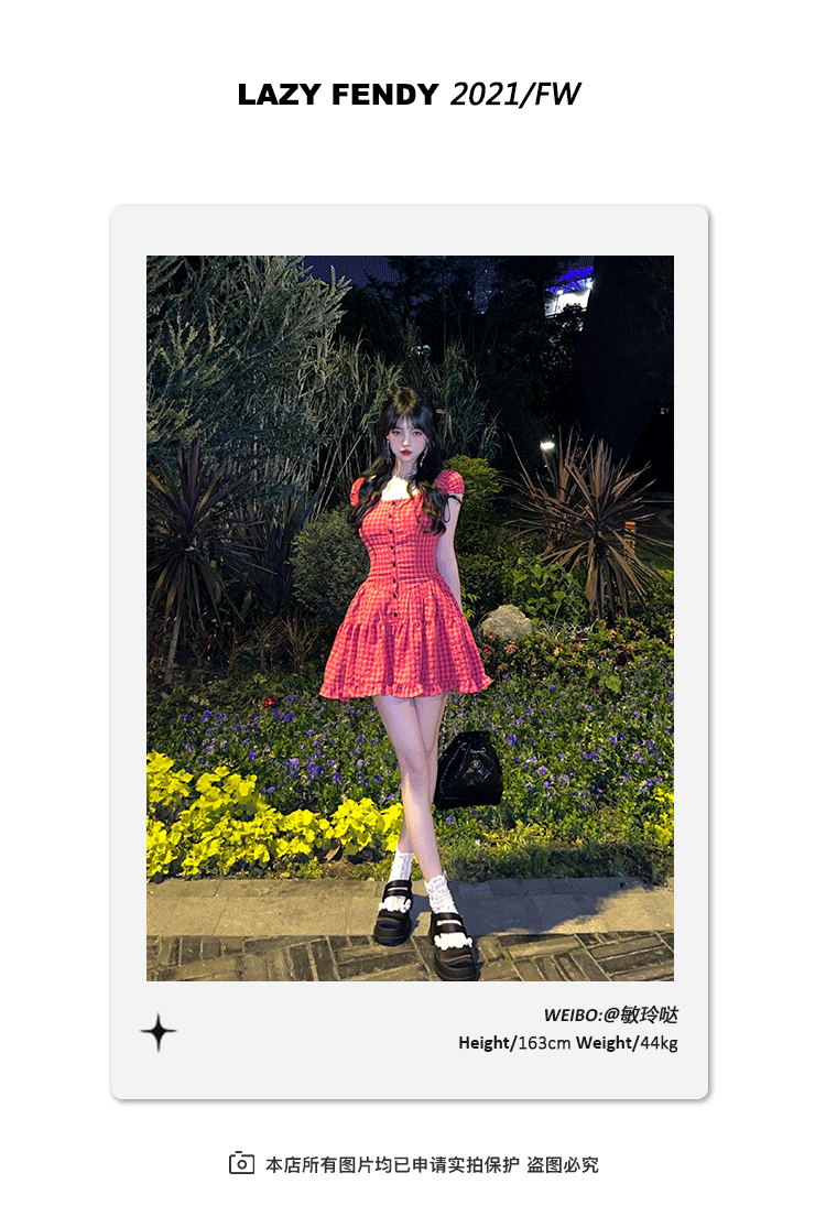 Lazyfendy Tiancai bạn gái Juxian trắng tinh khiết ham muốn hoa hồng đỏ kẻ sọc ngọt ngào váy eo váy váy tutu