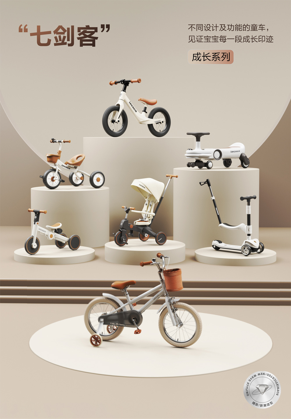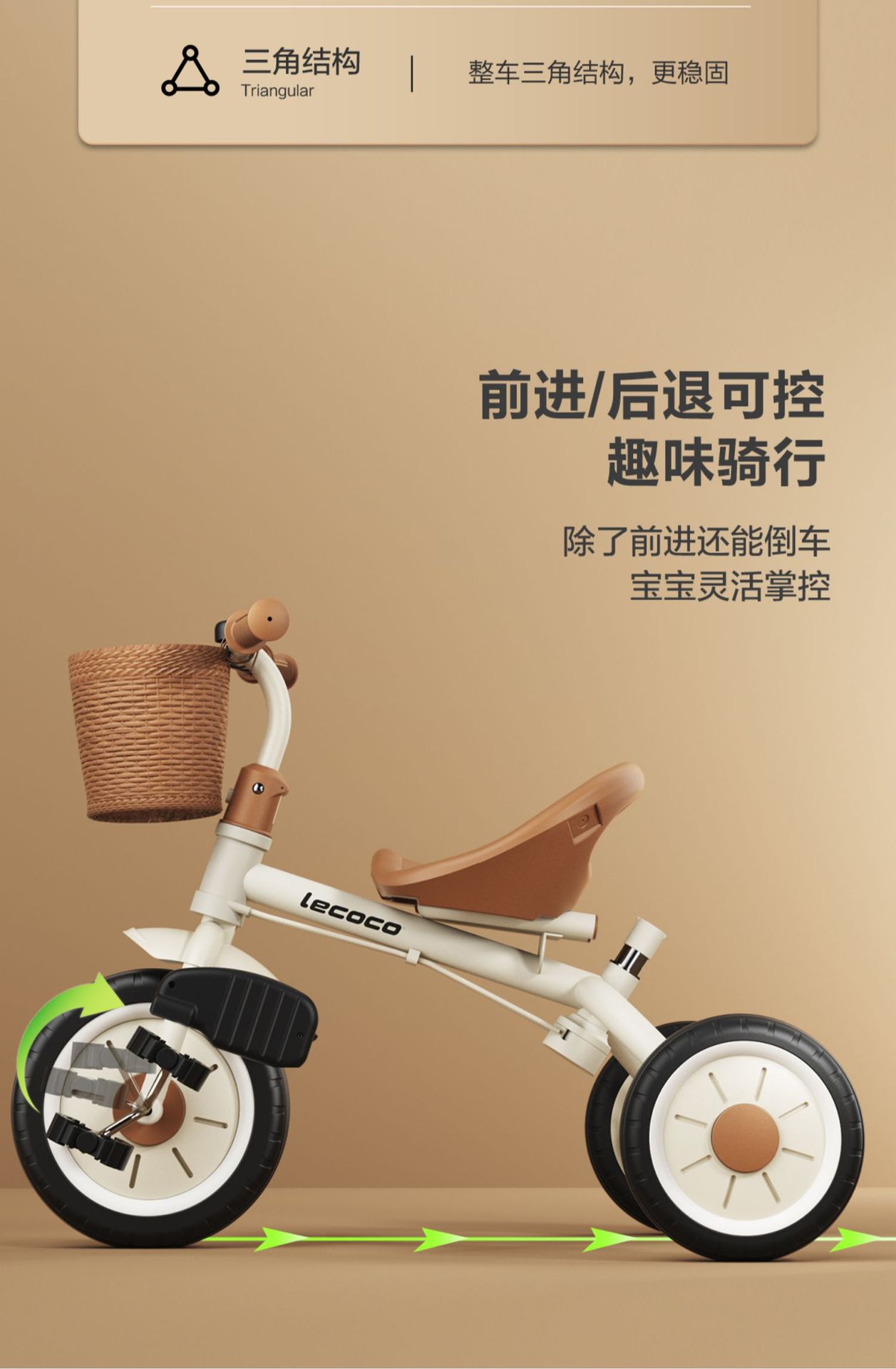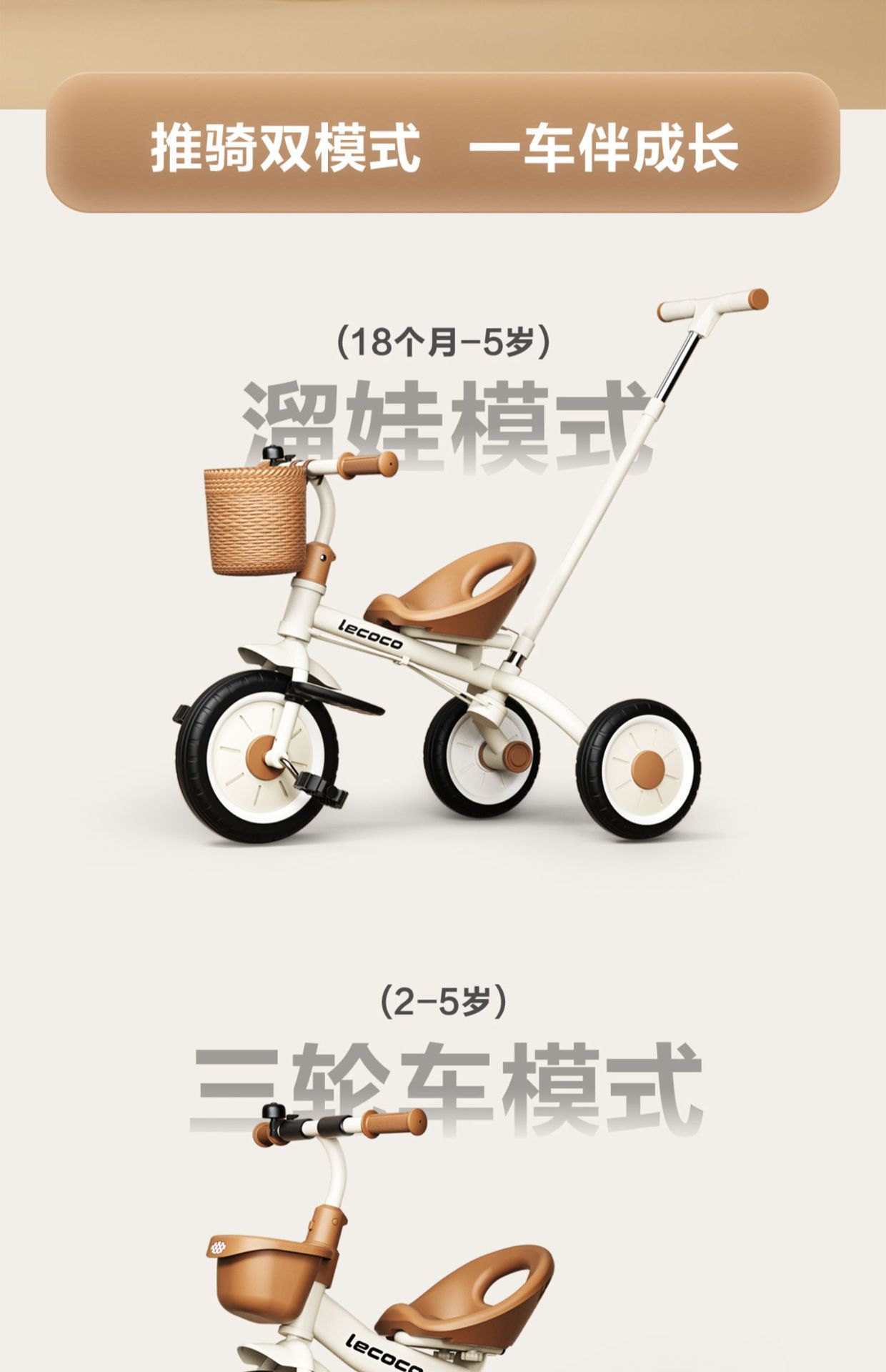 Lecoco Leka Xe Ba Bánh Cho Bé Xe Đẩy Xe Đẩy Miễn Phí Bơm Hơi Dây Cần Đẩy Xe Đạp Xe Ba Bánh Trẻ Em