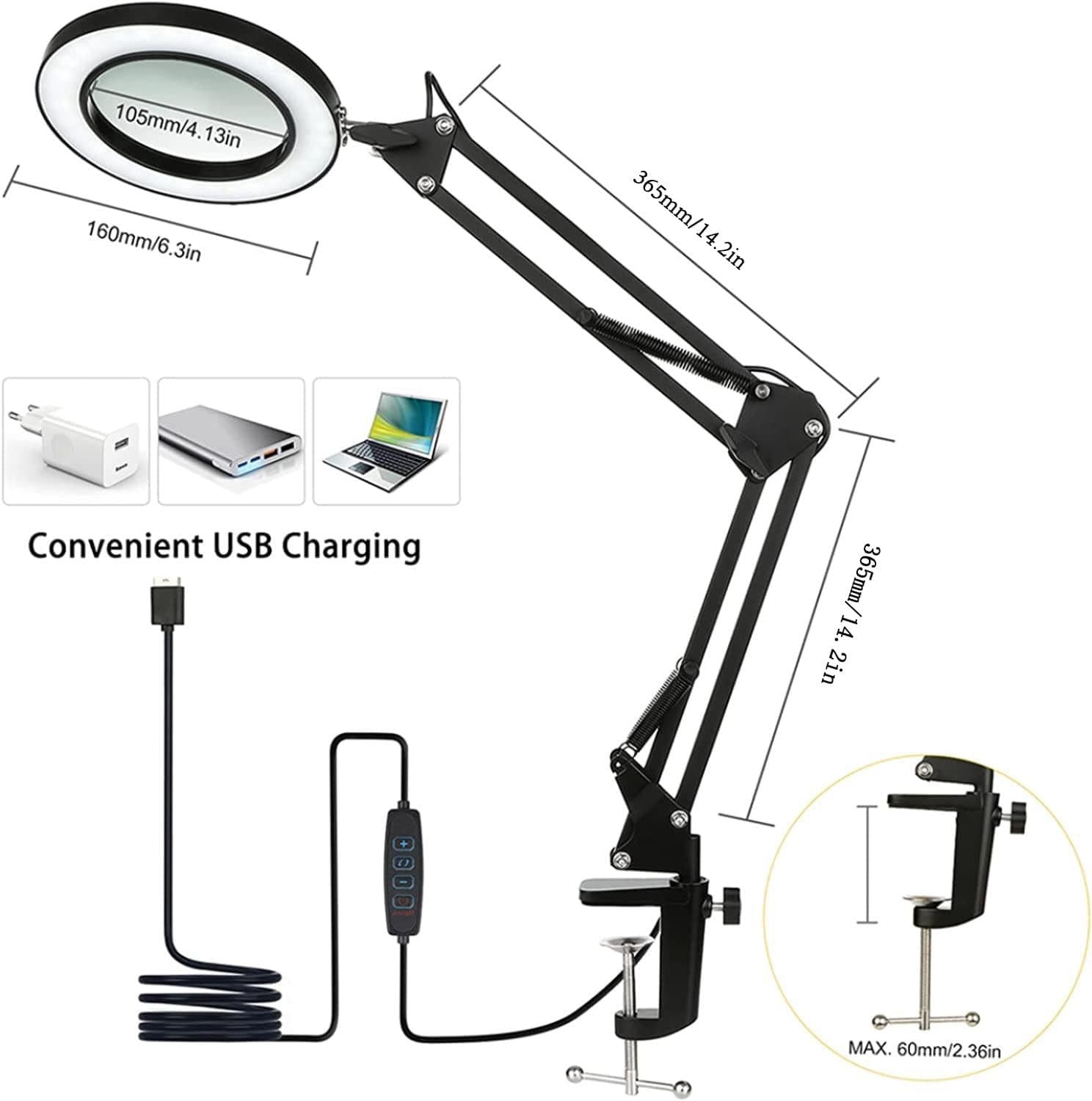 夹钳式底座:大型C夹钳使您可以将灯放大镜夹在厚度不超过2英寸(55毫米)的任何桌子,书桌,长凳,工作台或柜台上,这不仅可以解放双手,还可以节省桌面空间。