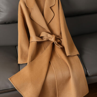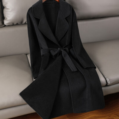 Len 2 mặt áo khoác len dài vừa phải kiểu dáng Hepburn mỏng cho nữ áo khoác mỏng tính khí cỡ lớn len Úc Maoxin