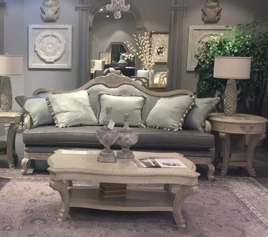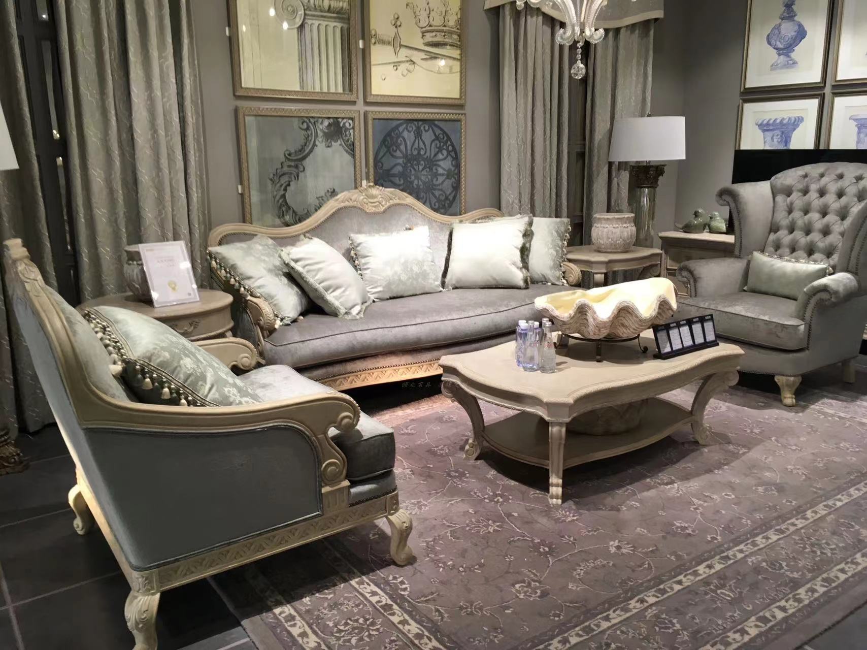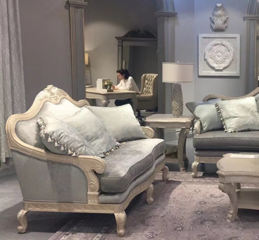 Lepinju Ghế sofa gỗ nguyên khối nhẹ nhàng sang trọng kiểu Mỹ Phong cách châu Âu retro biệt thự cổ phòng khách ba người ghế sofa chạm khắc kết hợp