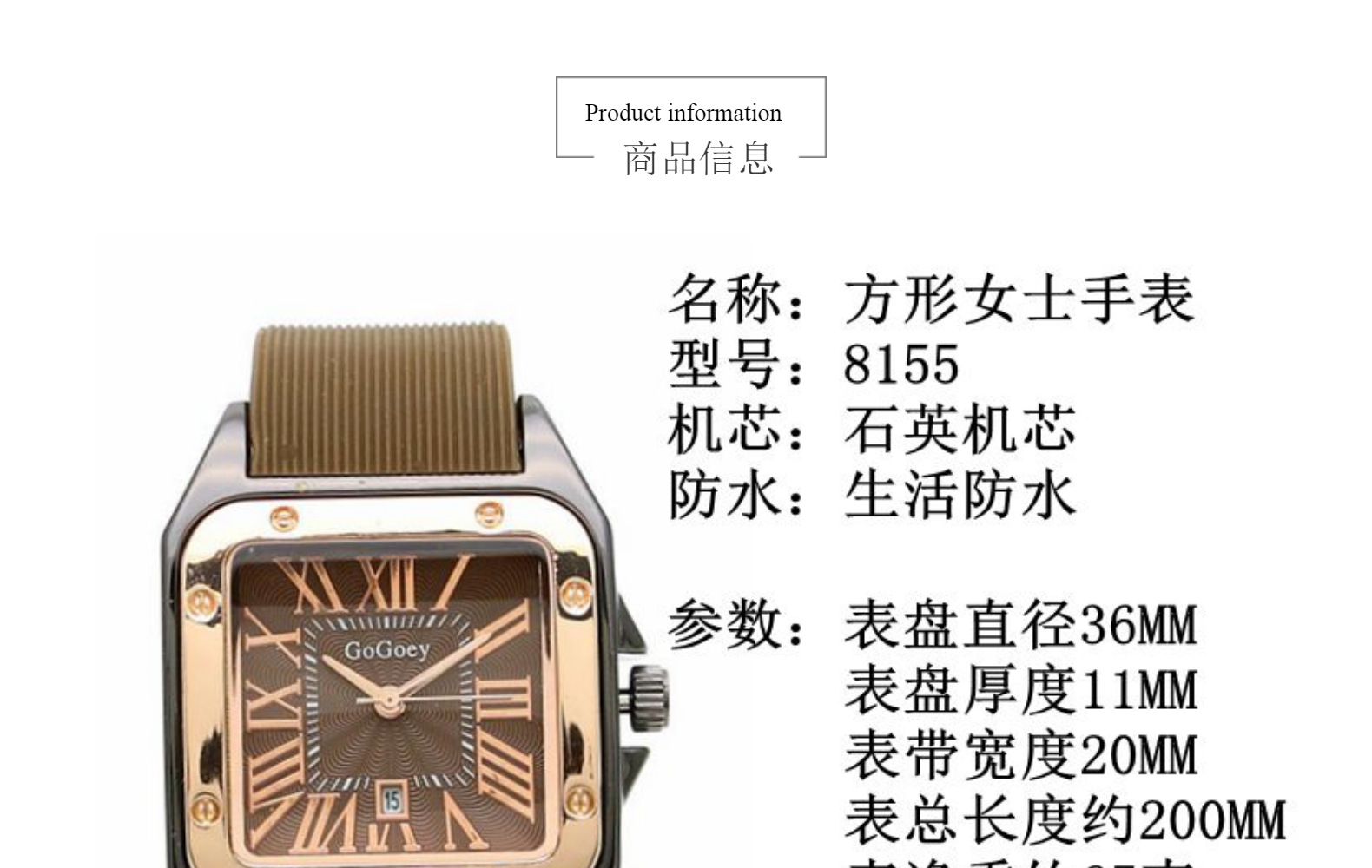 Nhãn hiệu bộ máy: Khác Đã được cấp bằng sáng chế Nguồn: Không Màu sắc: Trắng/Đỏ/Cà phê Dây đai màu cà phê/Đai đen Áo màu trắng/Dây đen Áo màu đen/Dây màu cà phê trên cùng màu trắng/Xám nhạt/Xám nhạt Độ dày: 11mm Kiểu khóa: Khóa gài Đường kính mặt số: 36mm Hình dạng mặt số: hình vuông Chống thấm nước: Không Chất liệu khóa: Thép không gỉ Dịch vụ sau bán hàng: Bảo hành tại cửa hàng Quy cách đóng gói: 1*500 Xuất xứ (trong nước): Tỉnh Quảng Đông Gia công và tùy chỉnh: Không Có nguồn để xuất khẩu xuyên biên giới hay không: Có Thương hiệu: GOGOEY Mục số: 8155 Kiểu chuyển động: SL68 Loại chuyển động: Thạch anh Chất liệu dây đeo: Silicone Đối tượng áp dụng: Vỏ dành cho nữ Loại đáy: Thông thường Loại vương miện: Vương miện xoắn ốc LOGO in: Có sẵn Các nền tảng hạ lưu chính: ebay/Amazon/Wish/Speed Sell/độc lập station/LAZADA/LAZADA có thương hiệu riêng có thể được ủy quyền: Không Chất liệu gương: Kính cường lực khoáng Danh sách gương năm/mùa: Mùa hè 2021 Loại màn hình: Con trỏ Phong cách: Thời trang Khu vực bán hàng chính: Châu Phi/Châu Âu/Nam Mỹ/Đông Nam Á/ Bắc Mỹ/Đông Bắc Á/Trung Đông/Trung Đông Nhập khẩu: Không vận chuyển Xuất xứ: Trung Quốc Chất liệu vỏ: Hợp kim