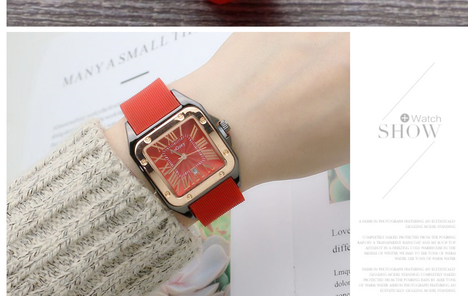 Lịch Vuông Bé Trai Dây Đồng Hồ Quy Mô La Mã Nam Vintage Đồng Hồ Cao Su Nữ Dây Đồng Hồ Thạch Anh Nữ 8155