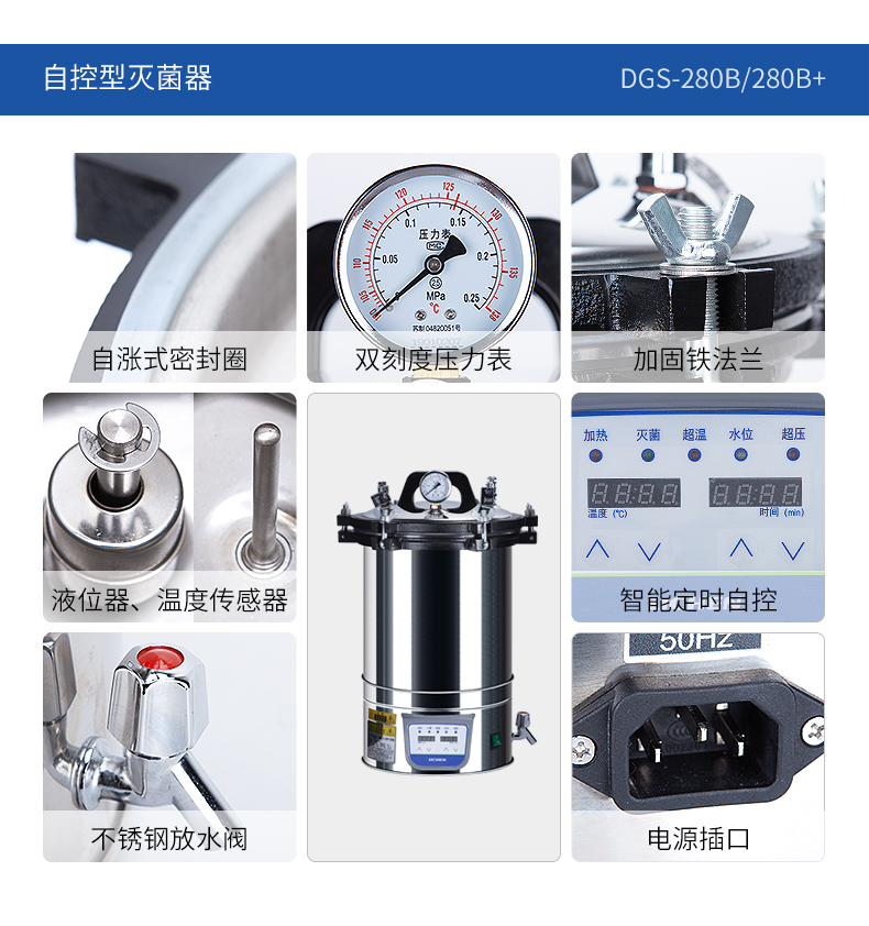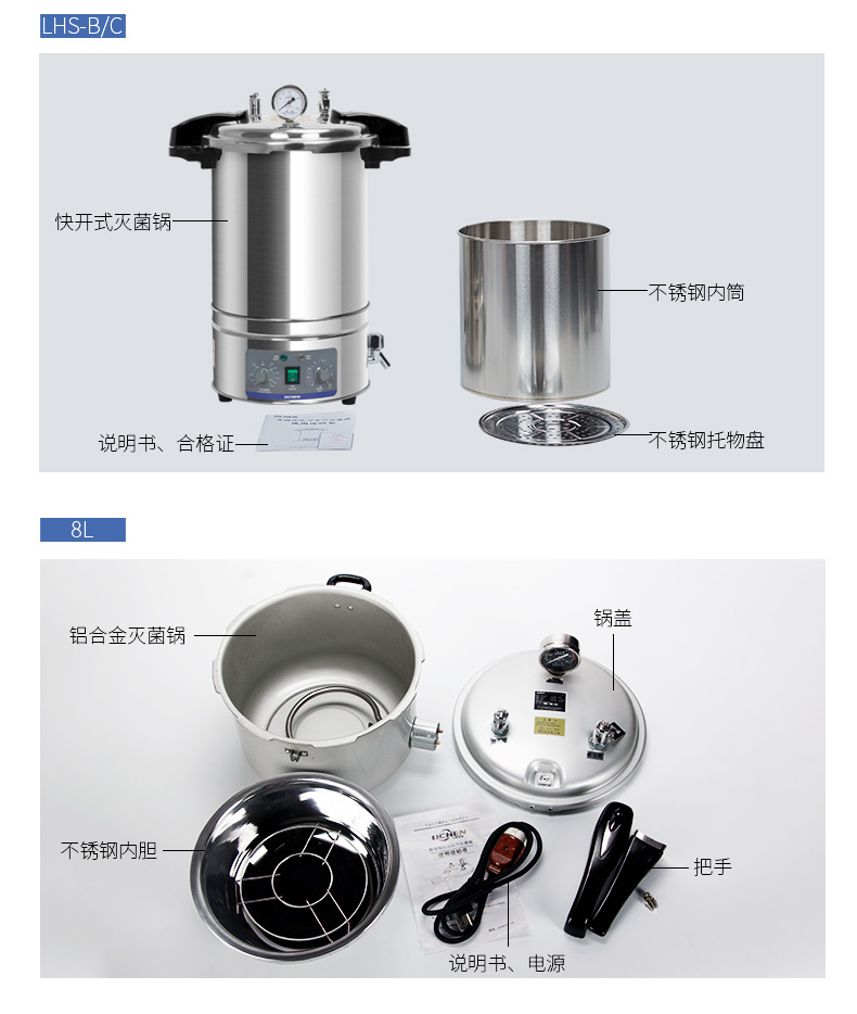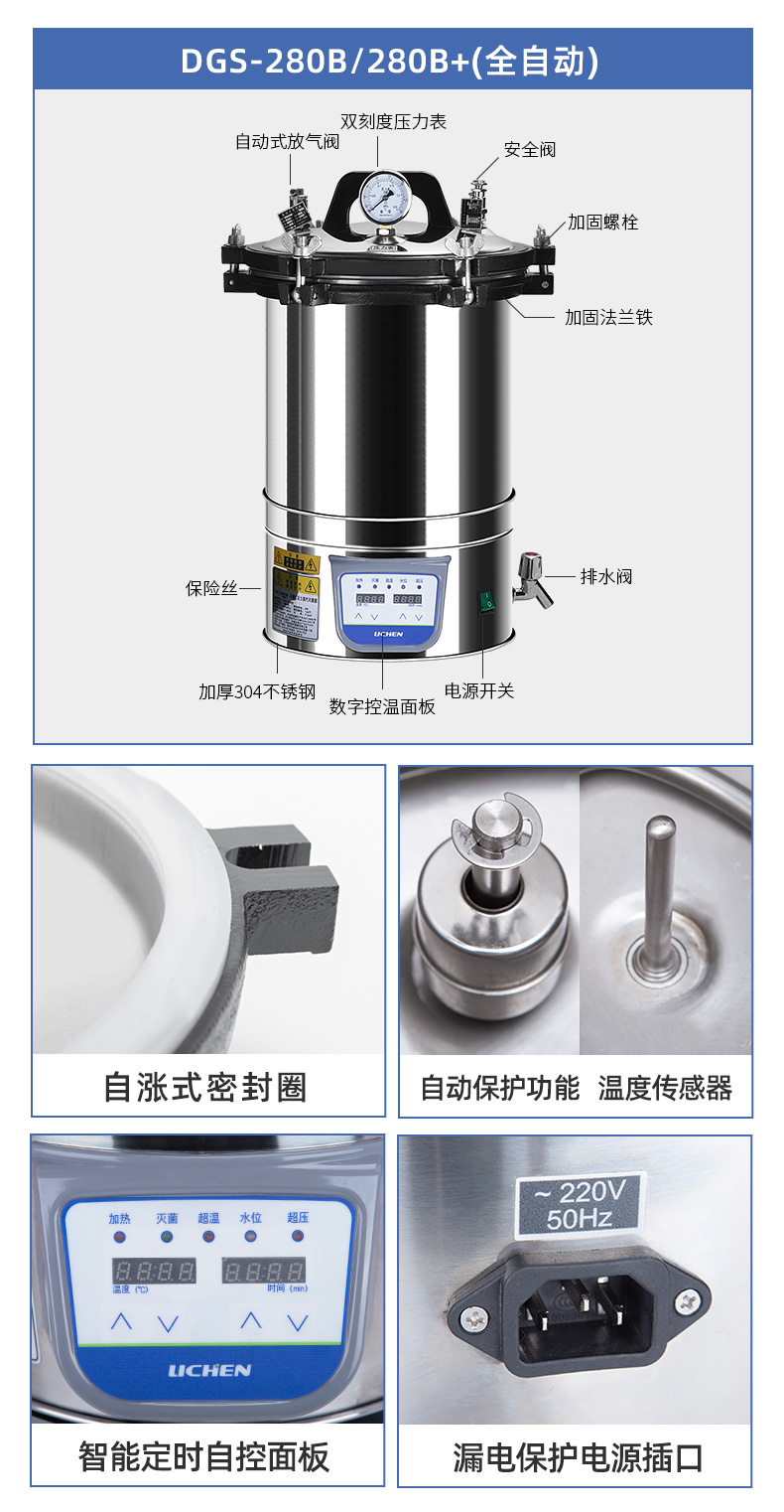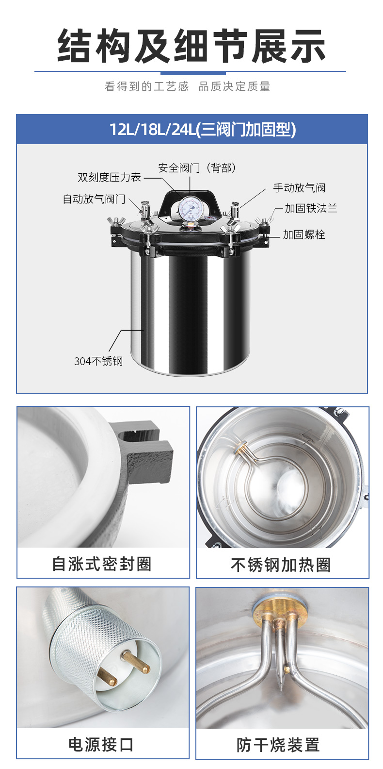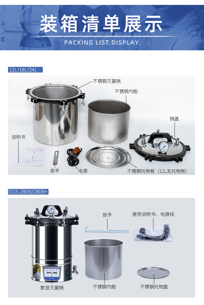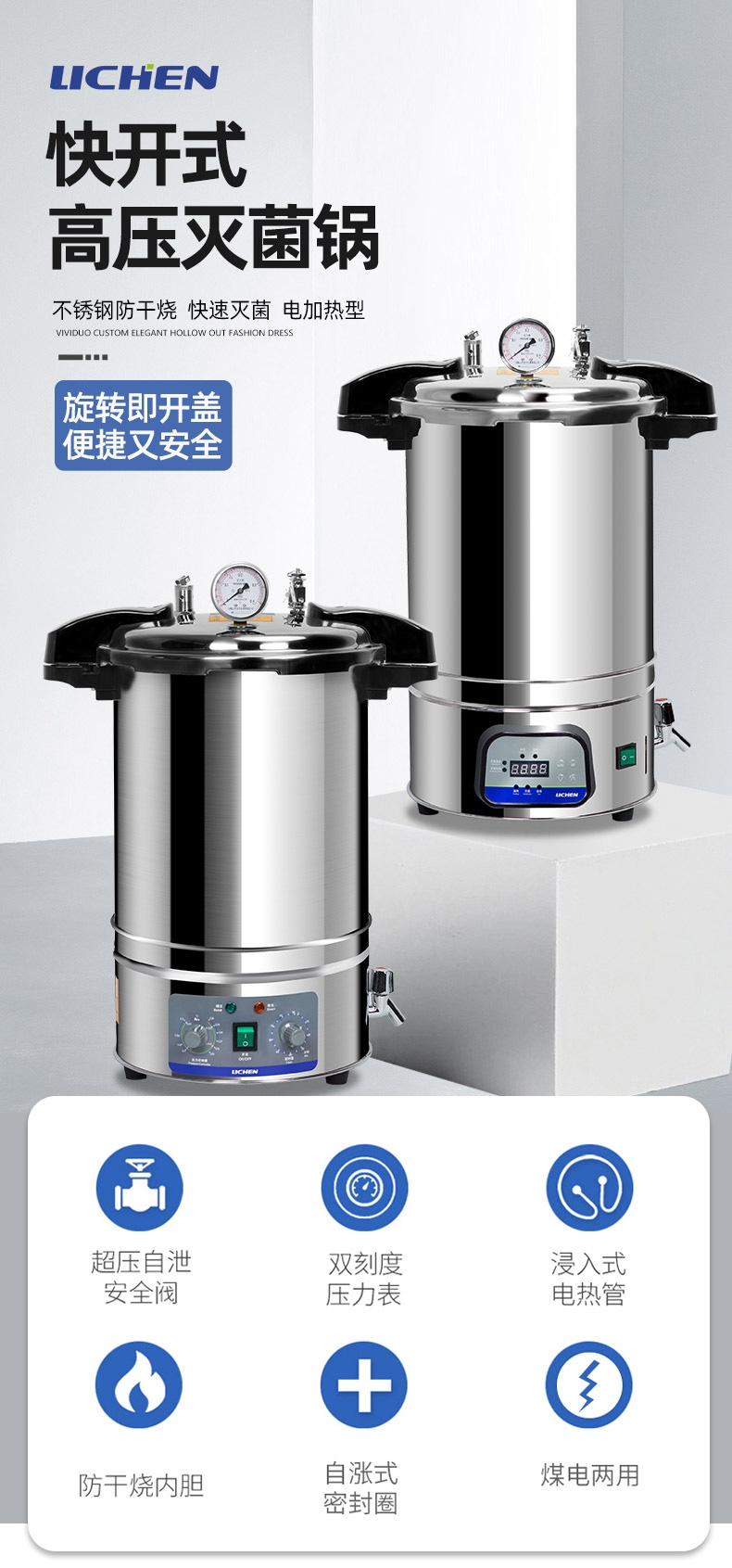 Lichen nồi hấp tiệt trùng di động bằng thép không gỉ nhiệt độ cao Máy tiệt trùng phòng thí nghiệm nhỏ Máy tiệt trùng 18L