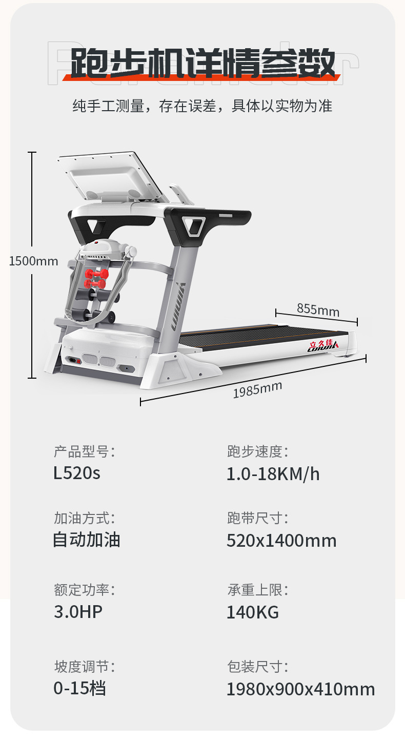 Lijiujia L520s máy chạy bộ thương mại cấp phòng tập thể dục thiết bị tập thể dục thể thao trong nhà máy chạy bộ gấp ngoài trời