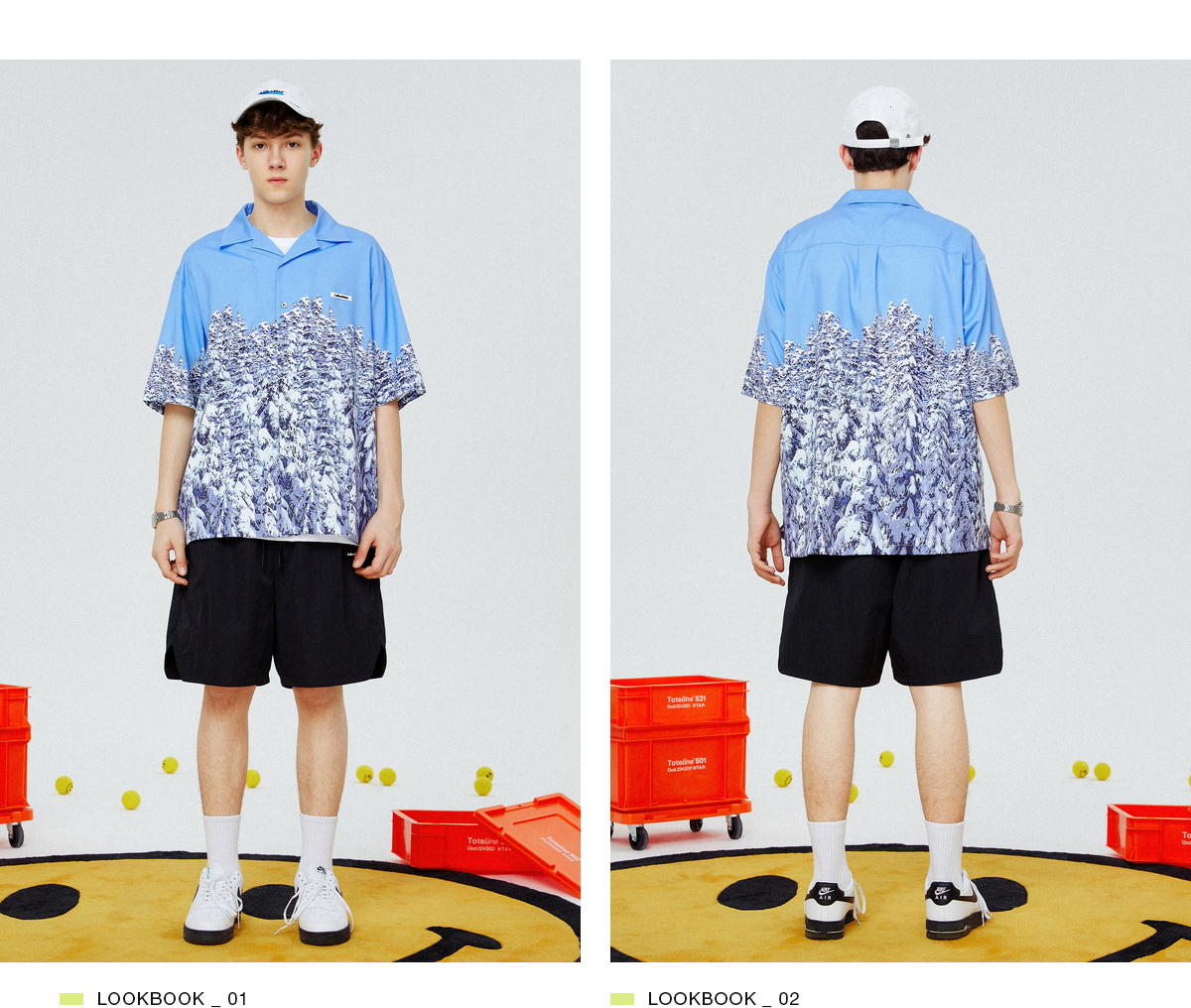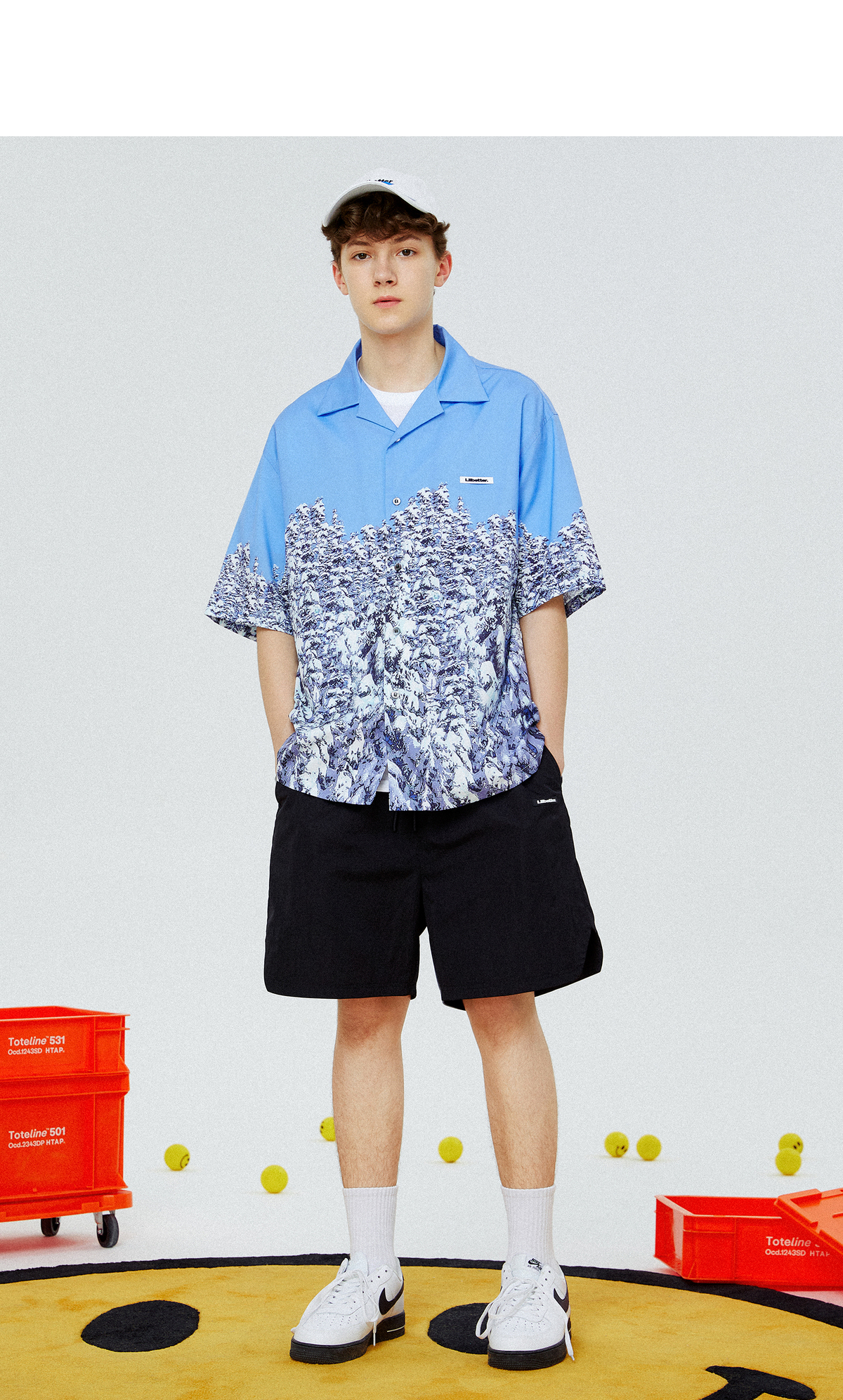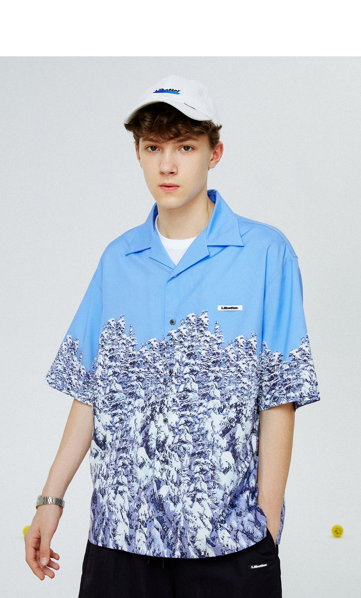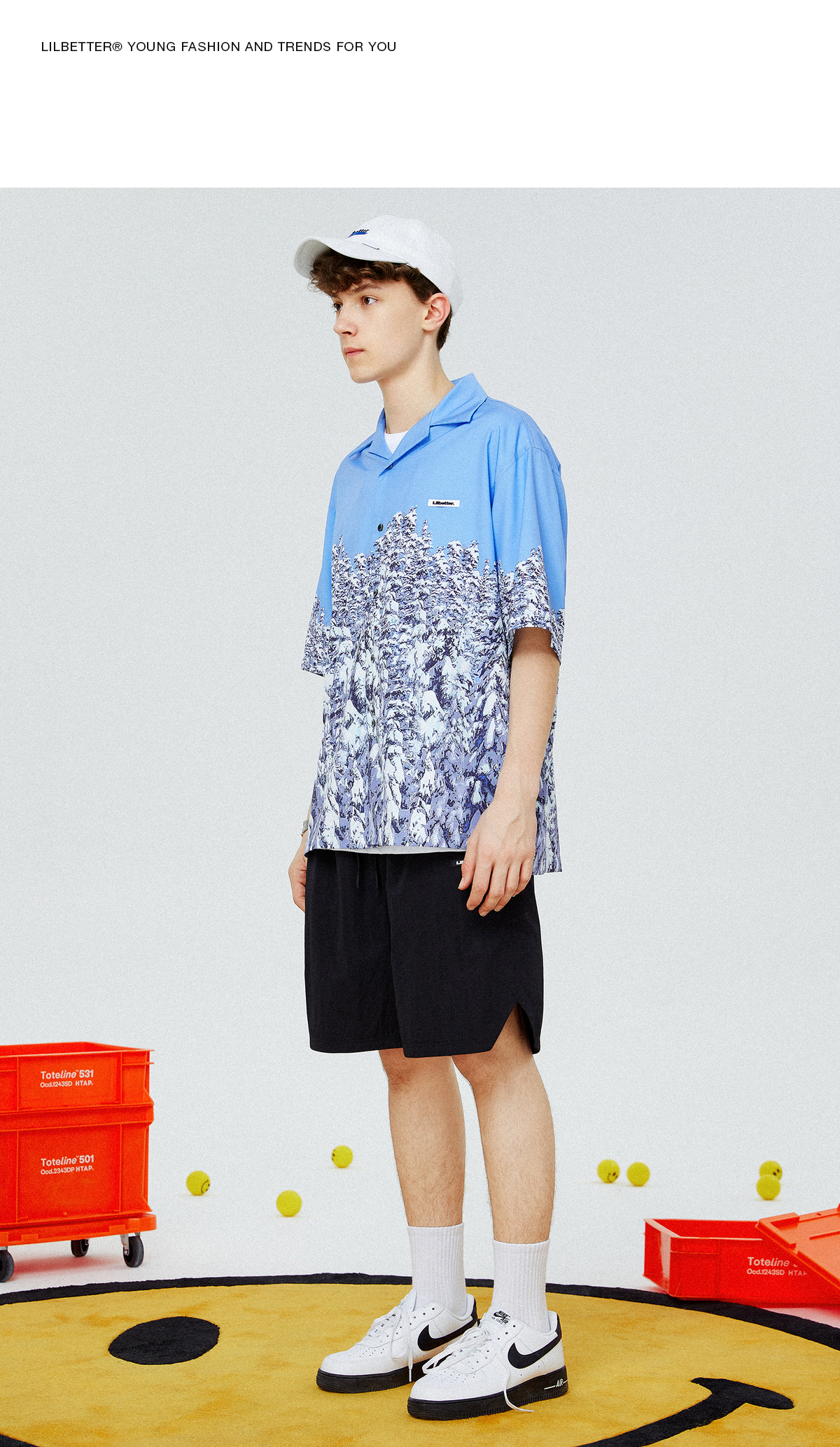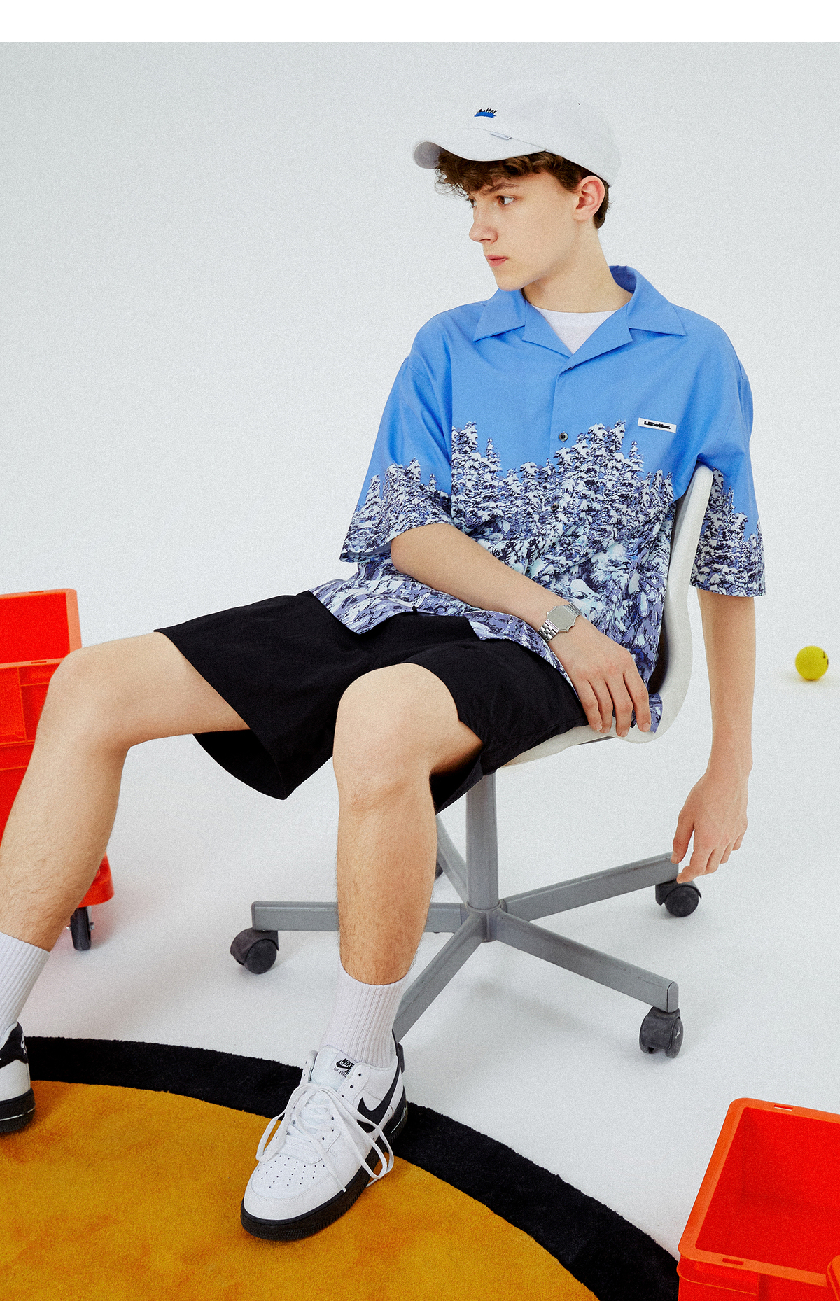 Lilbetter nam giới áo sơ mi giản dị Hồng Kông phong cách retro năm điểm tay áo in thủy triều thương hiệu trong áo sơ mi nửa tay áo sơ mi nam thủy triều