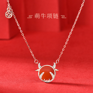 | 丽铭原创2021新款本命年红玛瑙吊坠生肖牛项链女纯银宫廷风锁骨链 |