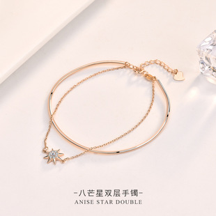 | 丽铭s925纯银二合一星星八芒星双层手镯女小众设计简约个性潮饰品 |
