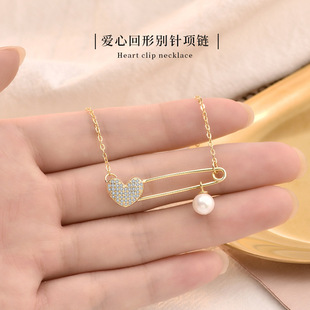 | 丽铭s925纯银爱心回形别针珍珠项链女复古轻奢锁骨套链情人节饰品 |