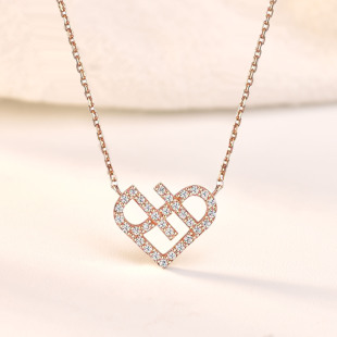 | 丽铭s925纯银镶钻爱心项链女精工蓝色大海全智贤同款情人节锁骨链 |