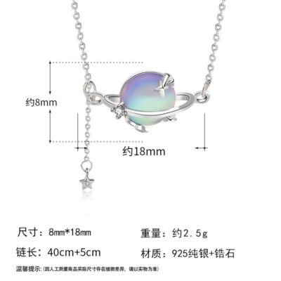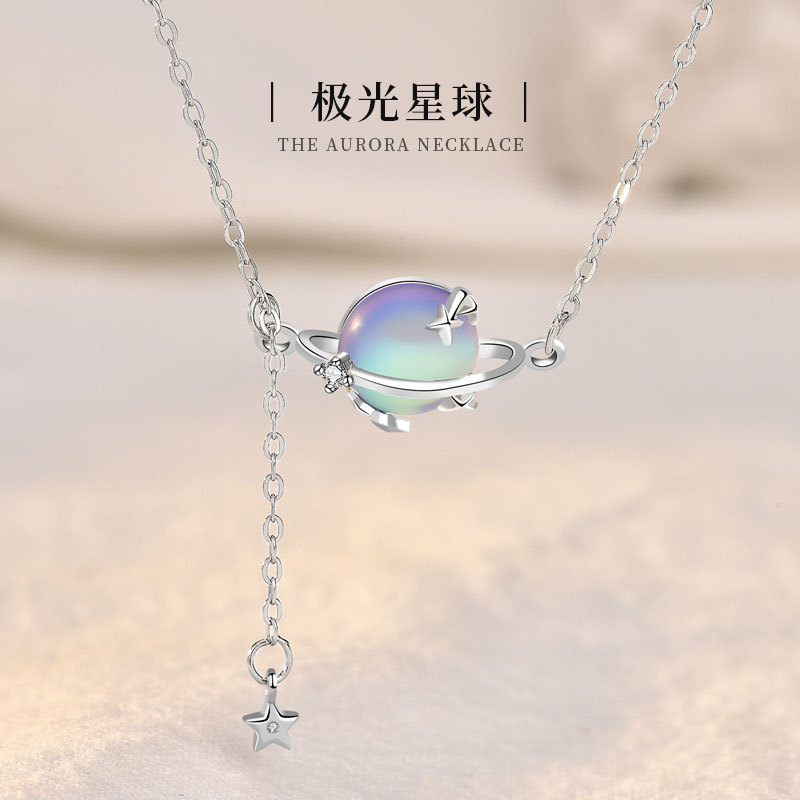 Liming gốc s925 sterling bạc moonstone hành tinh vòng cổ nữ Mori loạt thiết kế thích hợp cảm giác tua xương đòn dài chuỗi