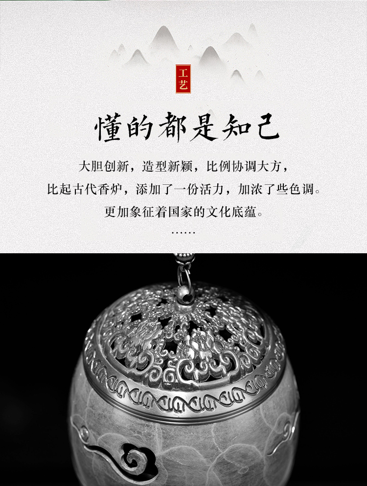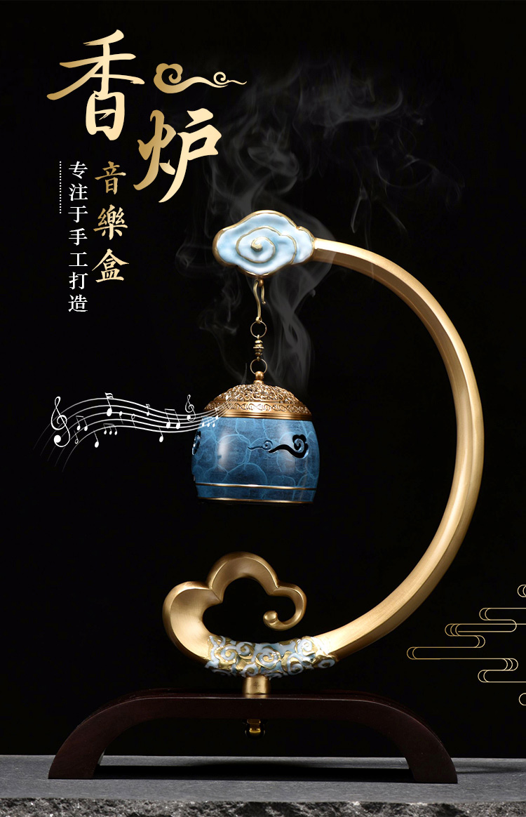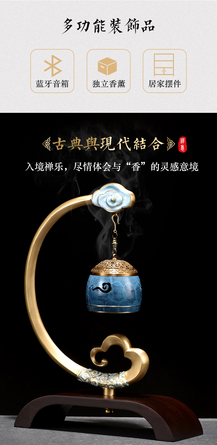 LO.GULEYA Đồ trang trí cổ điển bằng đồng nguyên chất kiểu Trung Quốc Xiangyun Ruyi Zen âm nhạc treo lư hương sản phẩm gia đình