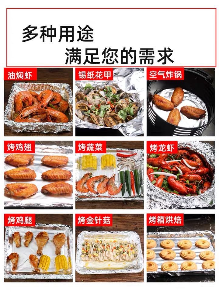 锡纸铝箔纸家用空气炸锅耐高温烘焙锡箔纸烧烤烤肉食品级锡纸