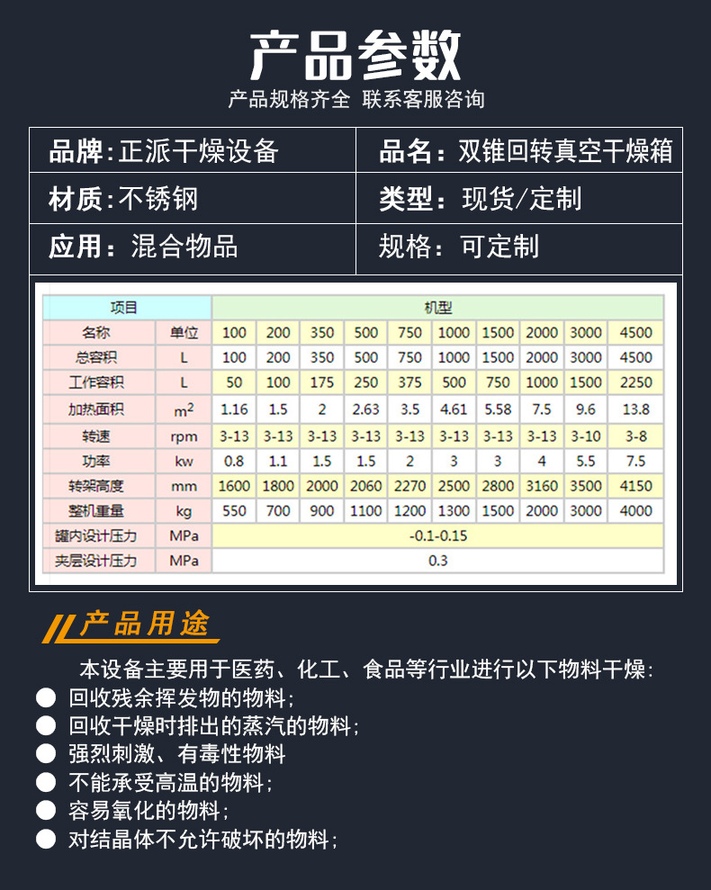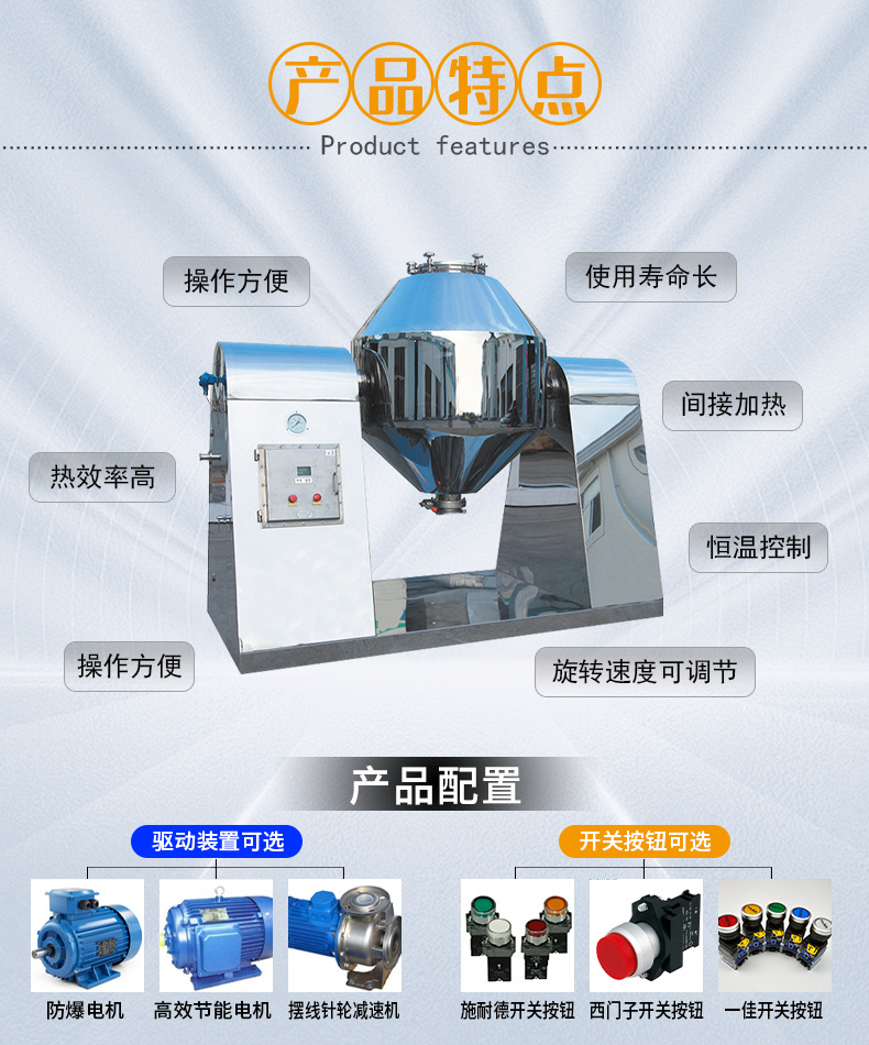 Sản phẩm nổi bật với các tính năng: Lò sấy chân không quay hình nón đôi Có thể sử dụng vật liệu độc hại Lò sấy chân không men thủy tinh Máy sấy hình nón đôi. Quý khách có nhu cầu mua Tủ sấy thực phẩm nhập khẩu vui lòng liên hệ với chúng tôi để được tư vấn hỗ trợ. Dịch vụ mua hàng Trung Quốc sẽ hỗ trợ quý khách mua hàng từ nhà cung cấp và giao tới tận tay quý khách hàng..