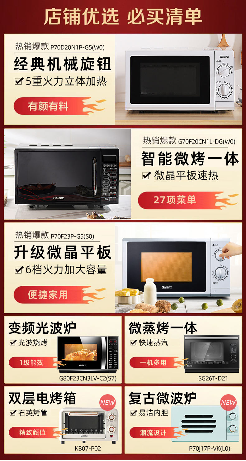 Lò vi sóng gia dụng mâm xoay đa năng Galanz 20L cơ mini nhỏ chính hãng chính hãng giá đặc biệt G5