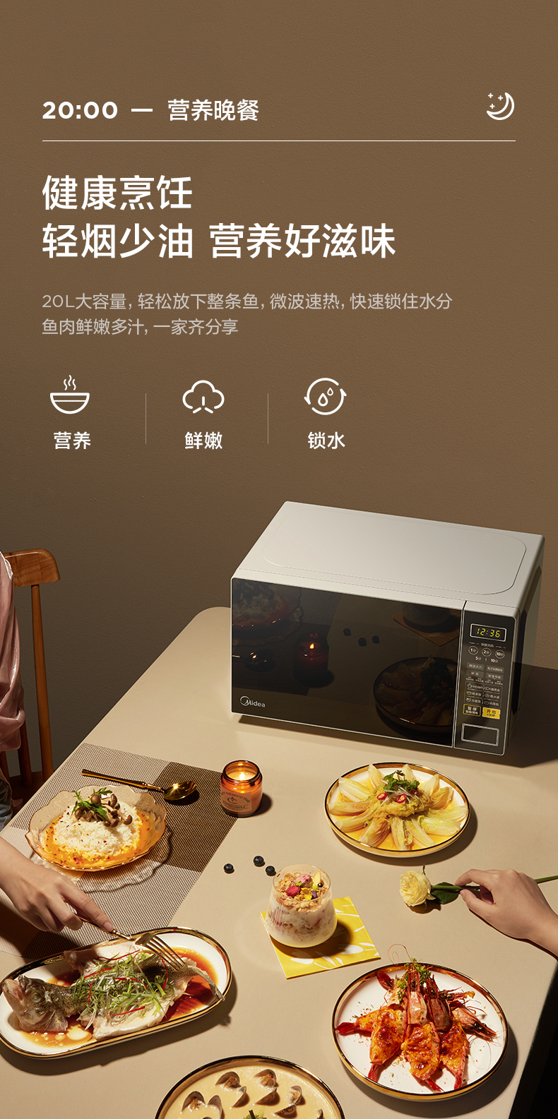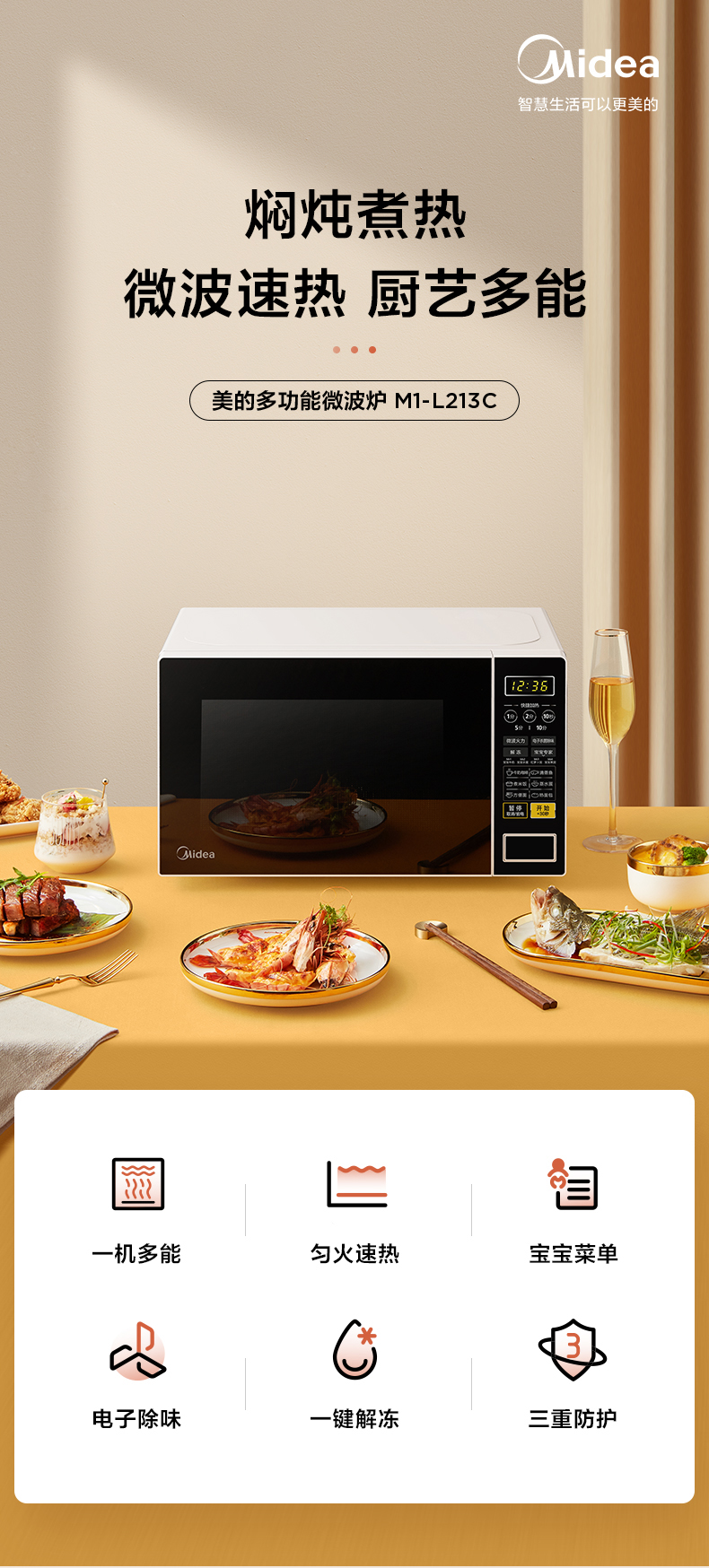 Lò vi sóng Midea gia dụng mini mâm xoay thông minh đa năng tích hợp tiệt trùng 213C