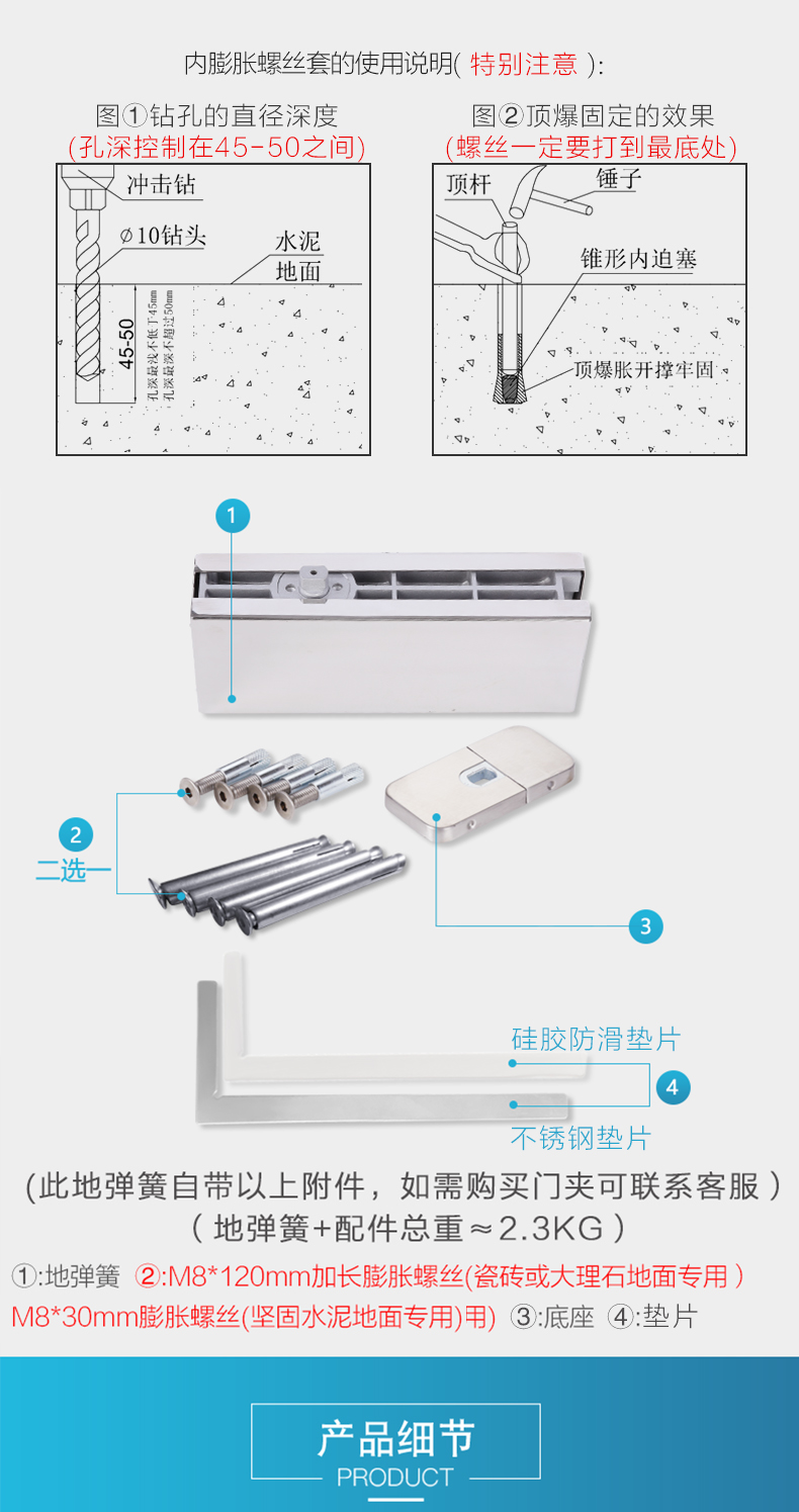Lò xo sàn GEKRONE không đào lỗ ẩn trục quay cửa kính không khung phụ kiện đa năng không có lò xo sàn