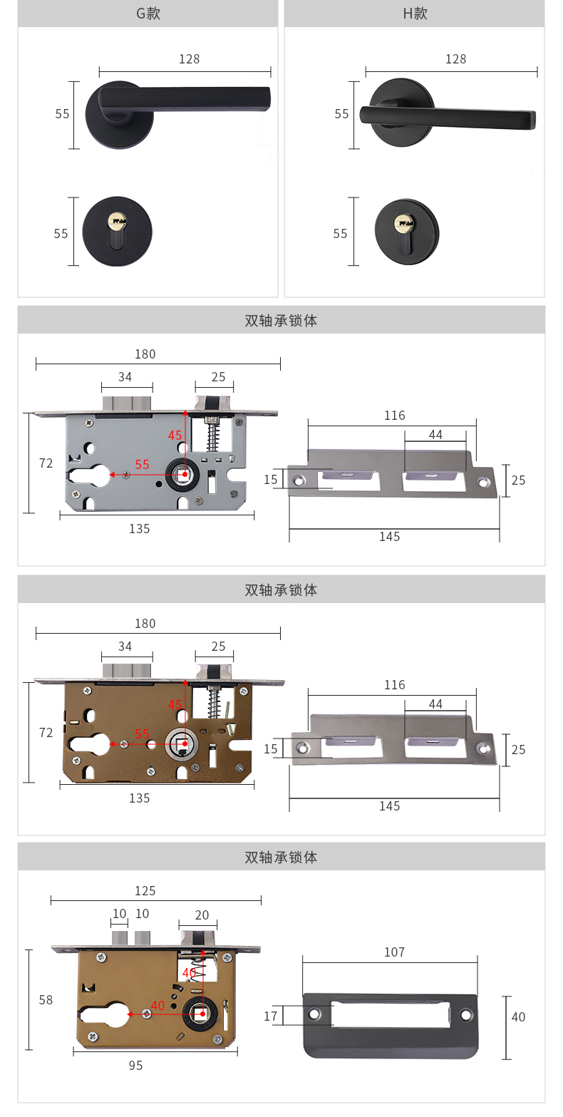 Loại hộ gia đình trong nhà phòng ngủ màu đen tay nắm cửa xử lý phòng bộ khóa phòng tắm Khóa cửa cũ Khóa cửa phòng