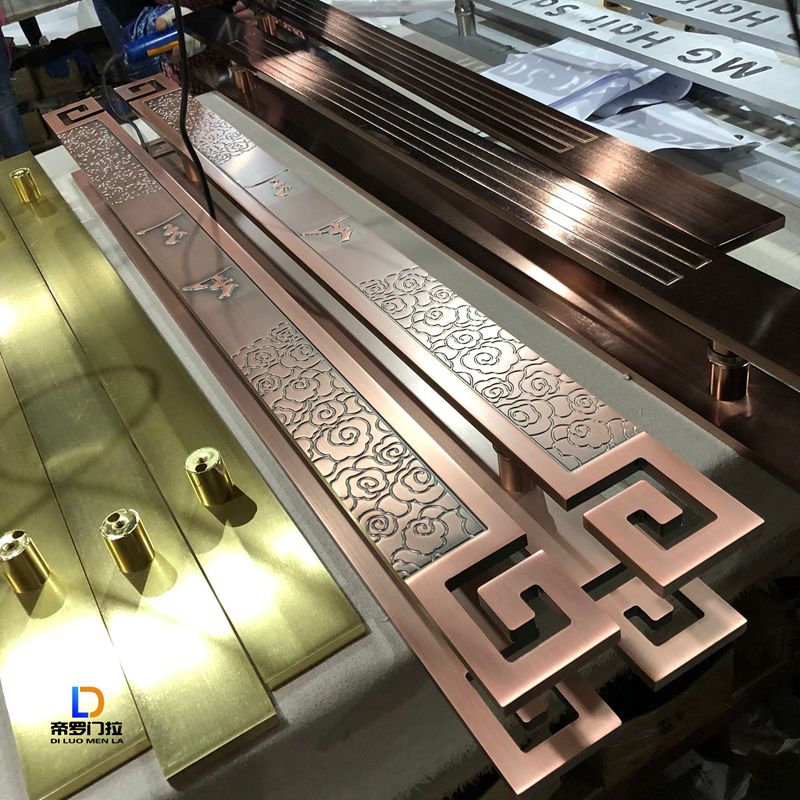 Logo Trung Quốc tay nắm cửa kính tay nắm cửa bằng đồng chạm khắc từ tay nắm cửa gỗ hiện đại