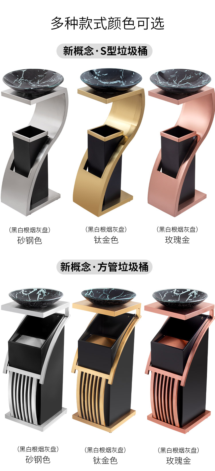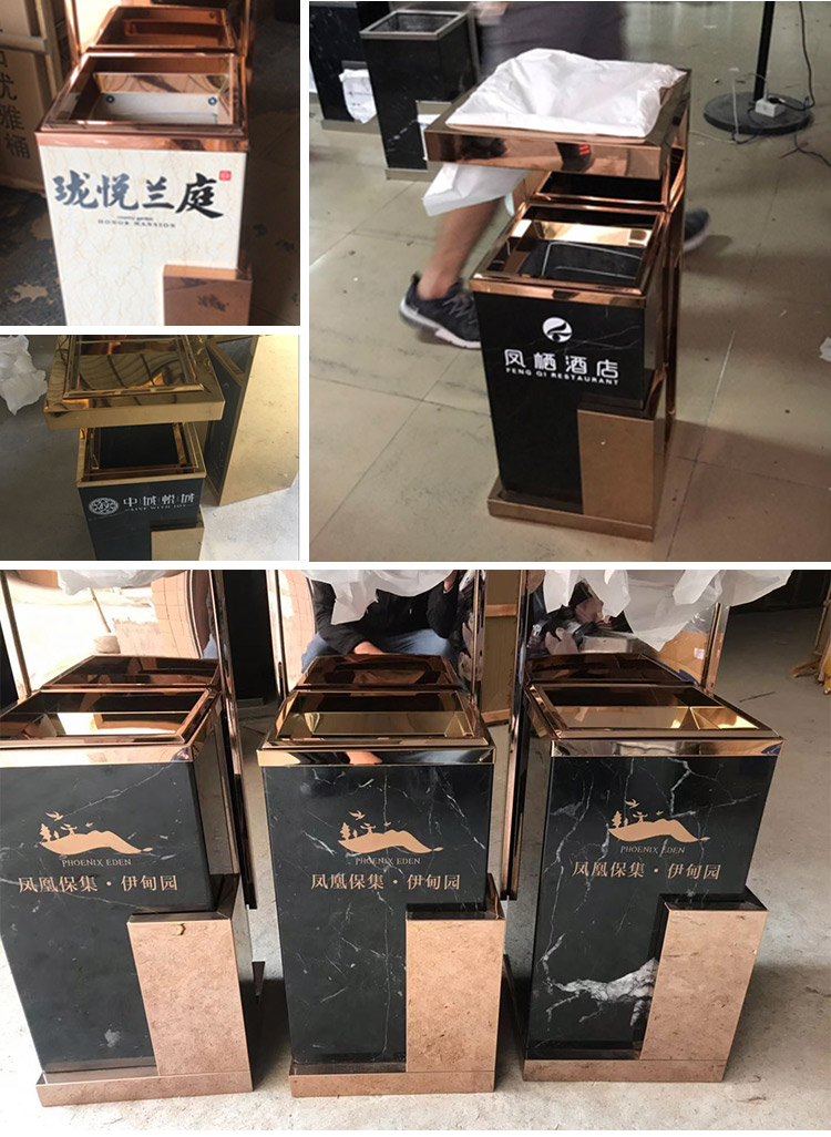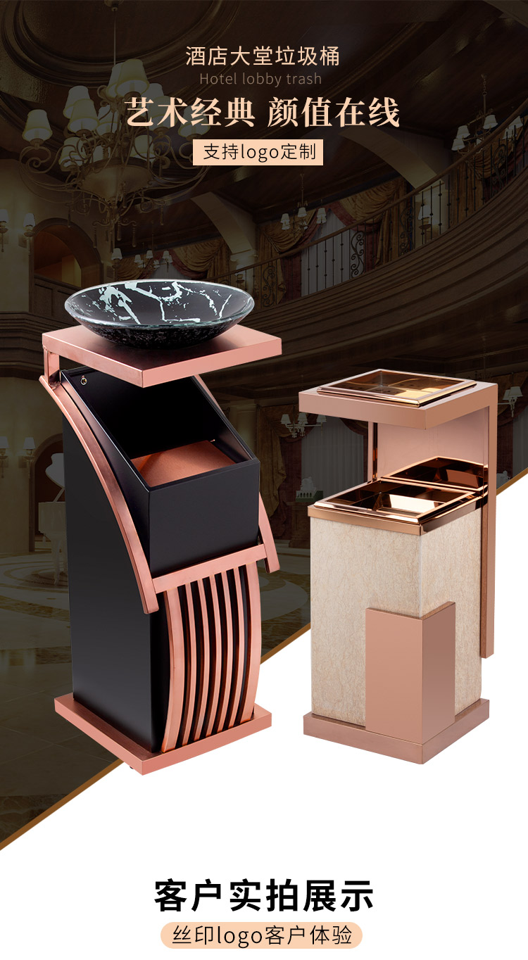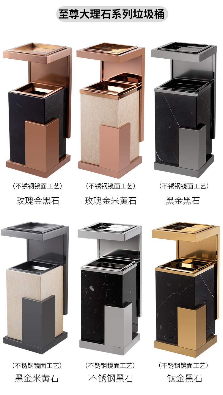 LOGO tùy chỉnh bằng đá cẩm thạch thùng rác có thể hút thuốc sảnh khách sạn thẳng đứng bằng thép không gỉ lối vào thang máy với gạt tàn