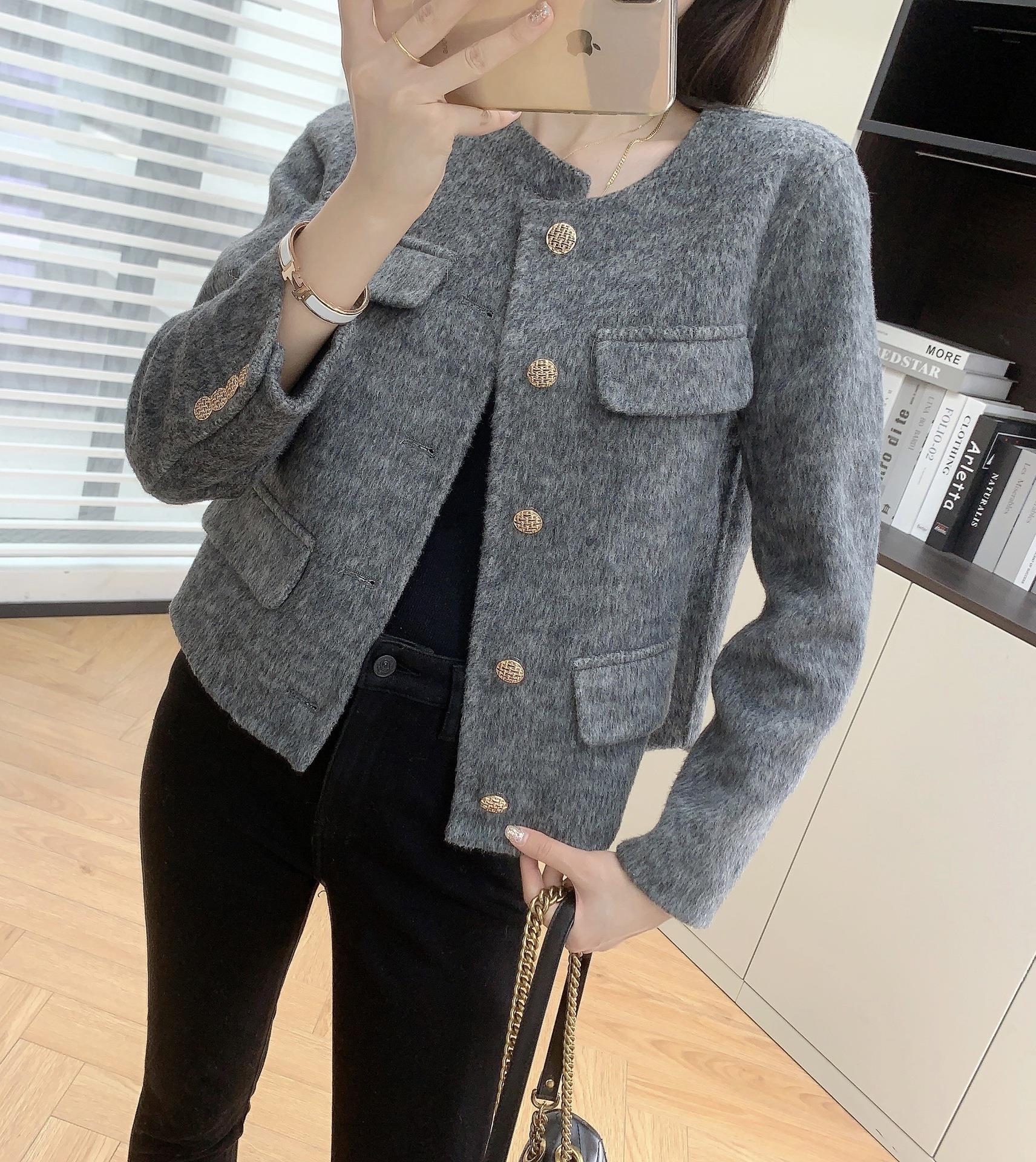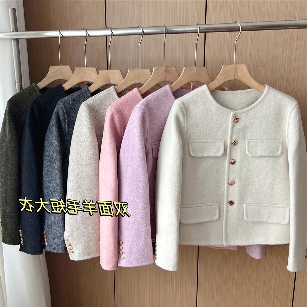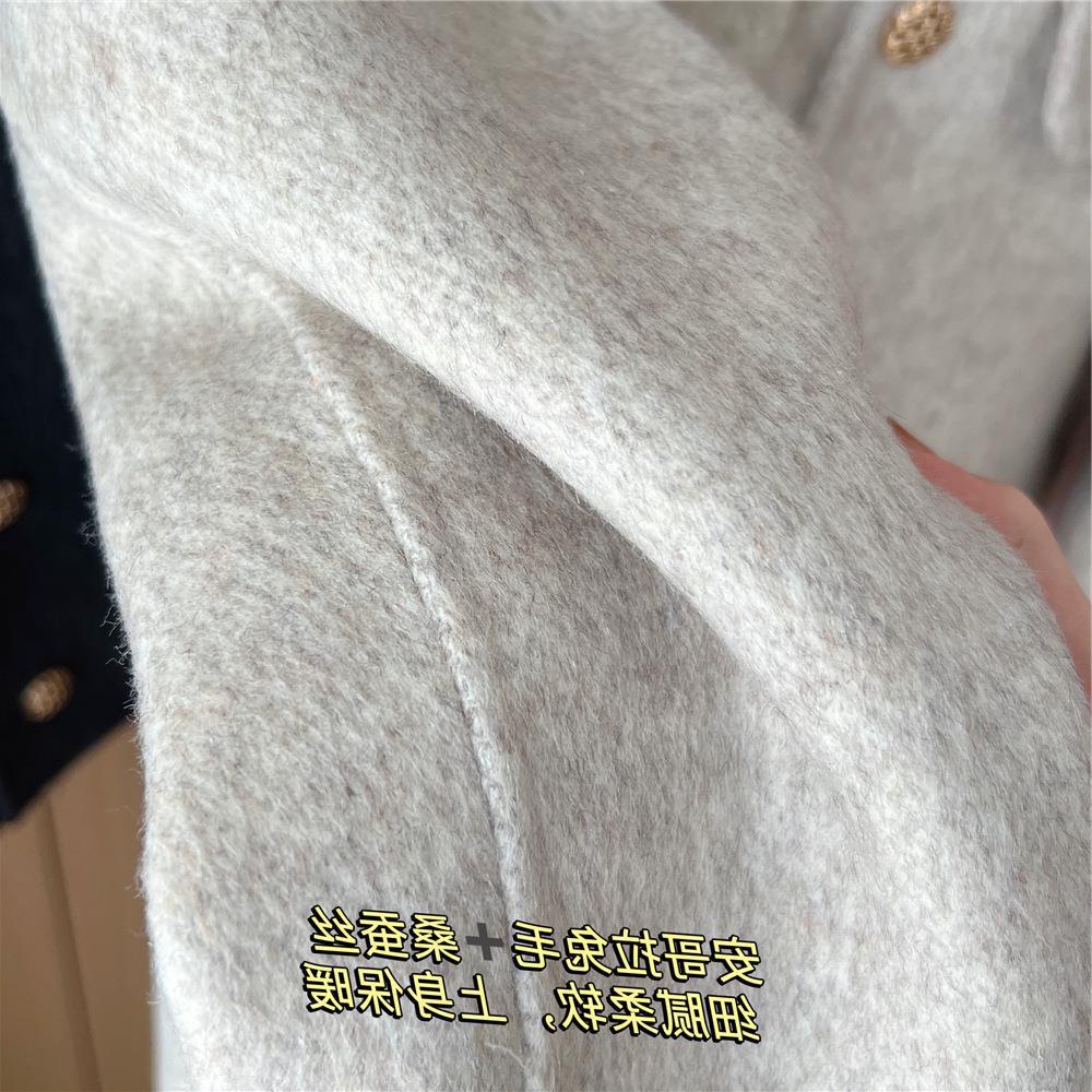 Lợi ích trái mùa! Phong Cách Phương Tây Lông Thỏ Angora 2 Mặt Len Tay Thơm Gió Áo Khoác Len Nữ Thu Đông