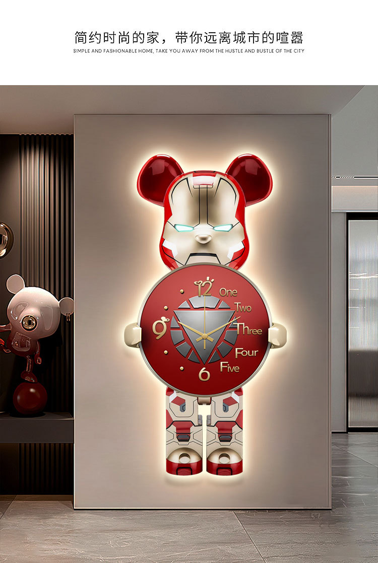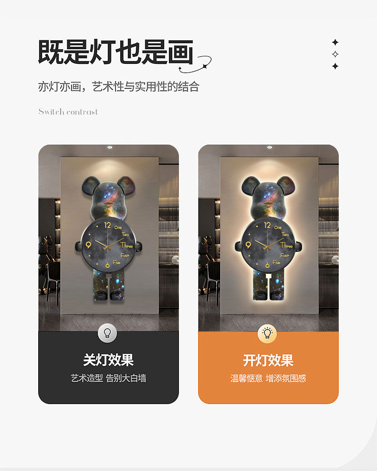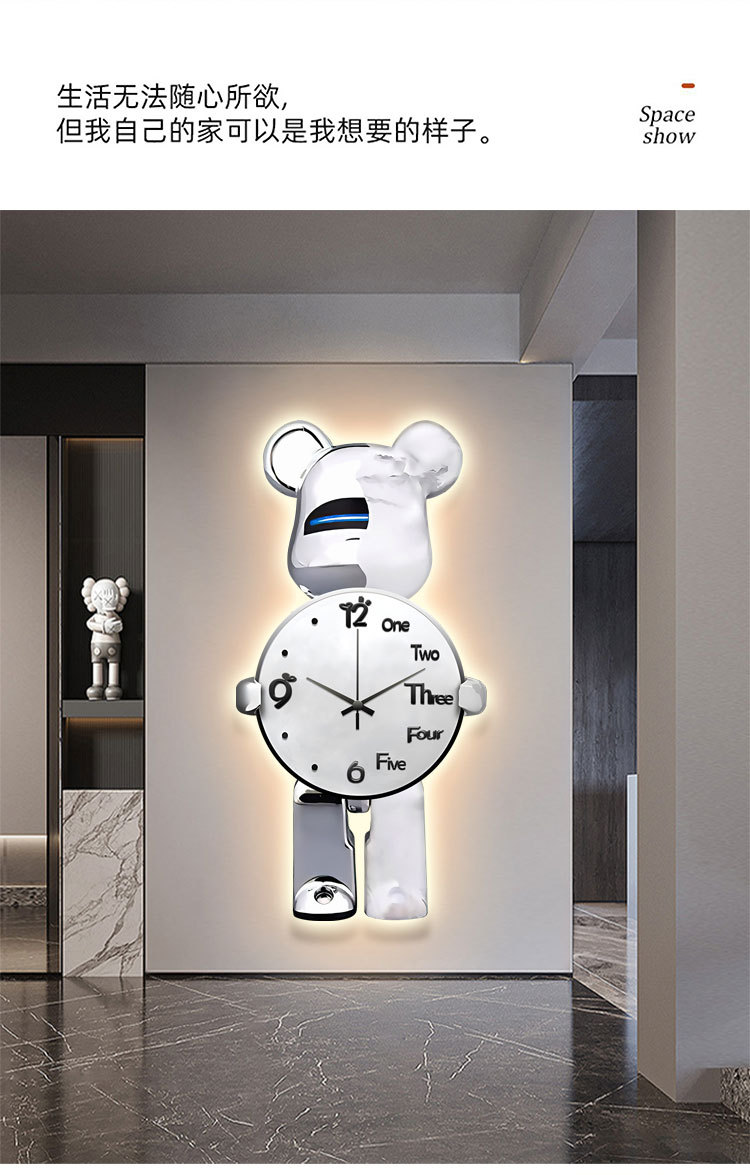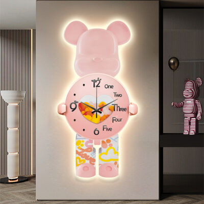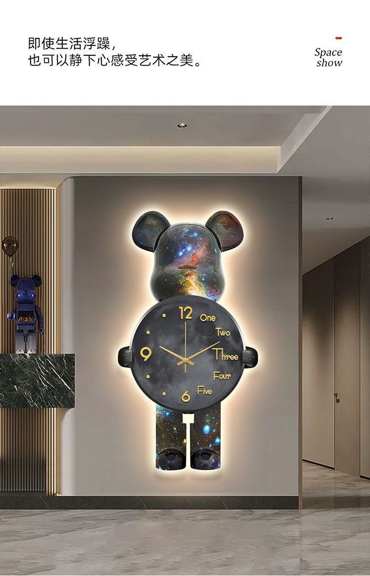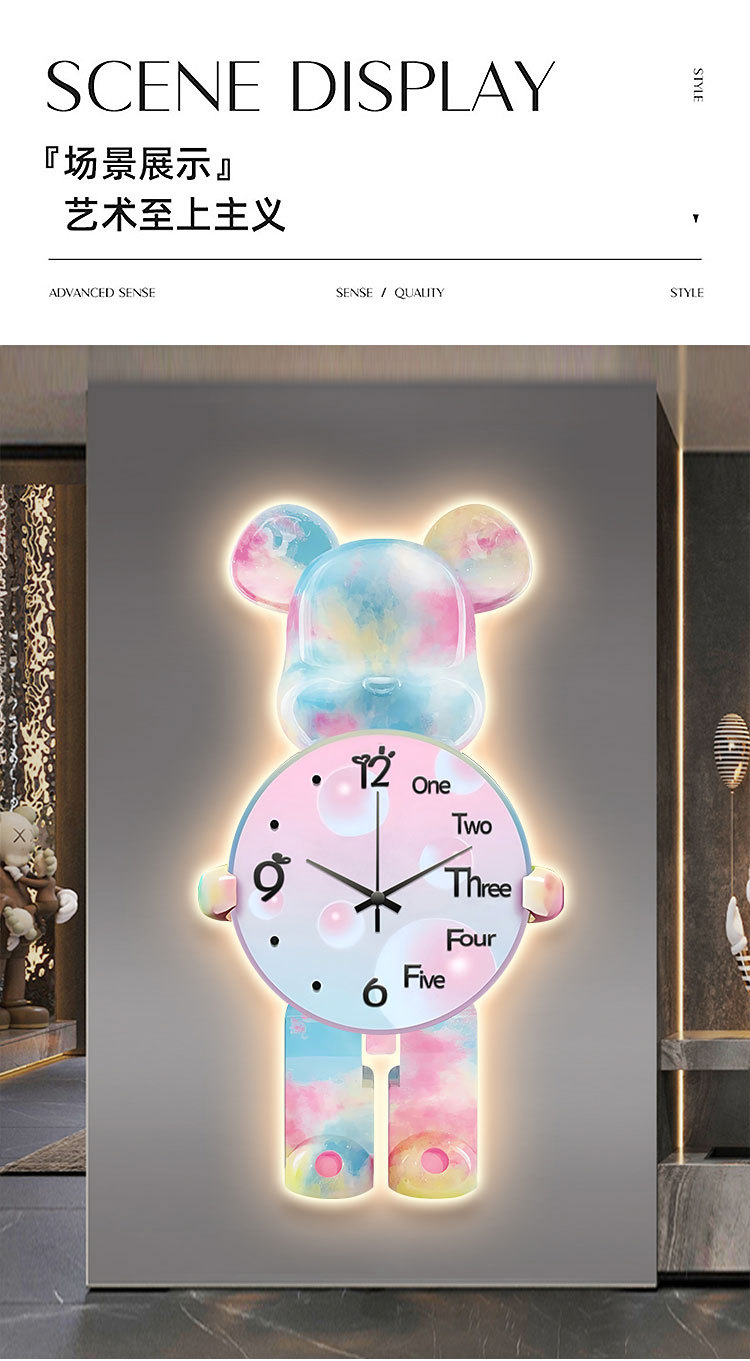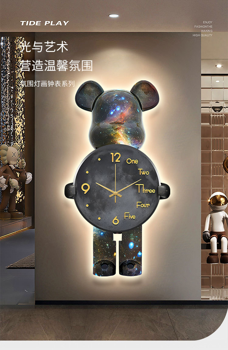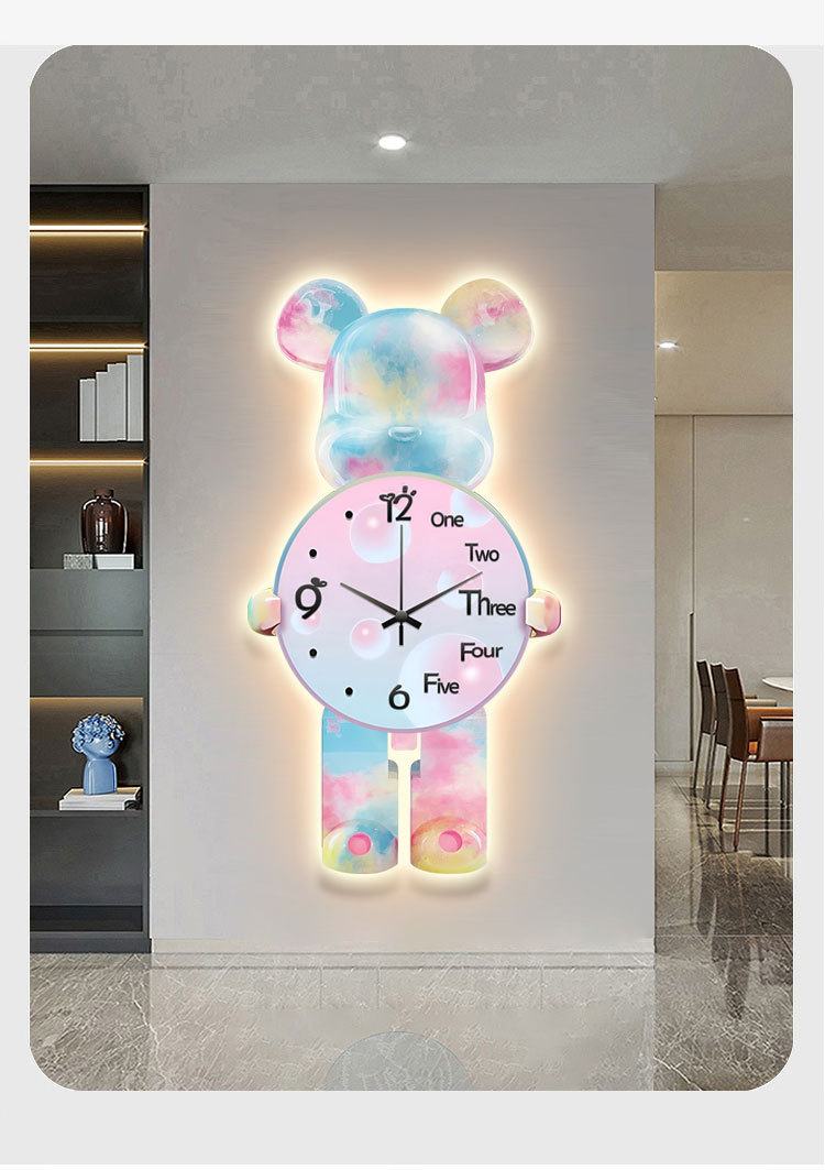 Lối vào hiên nhà tranh trang trí gấu bạo lực đèn led tranh ánh sáng sang trọng cao cấp treo tranh hành lang phòng khách đơn giản tranh đồng hồ