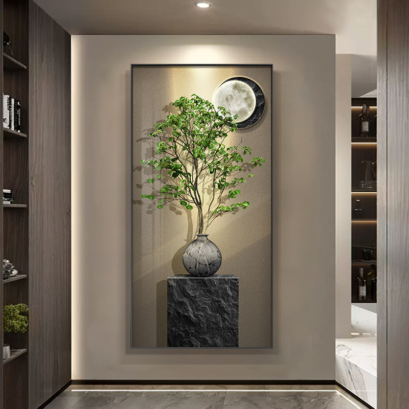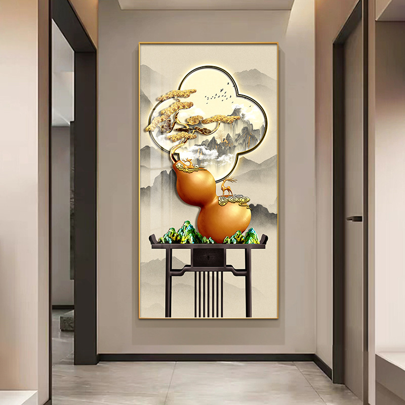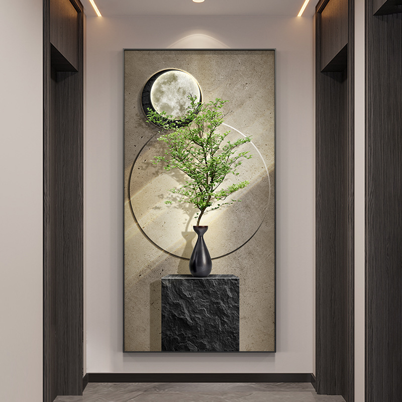Lối vào hiên trang trí bức tranh cảm giác giả tưởng phòng khách nền hành lang bức tranh tường phong cách Trung Quốc mới thực vật xanh lối đi tranh treo