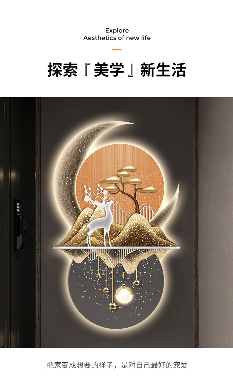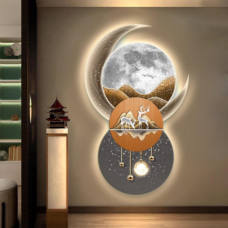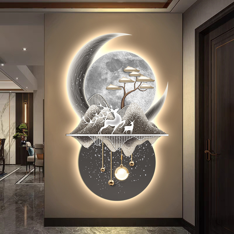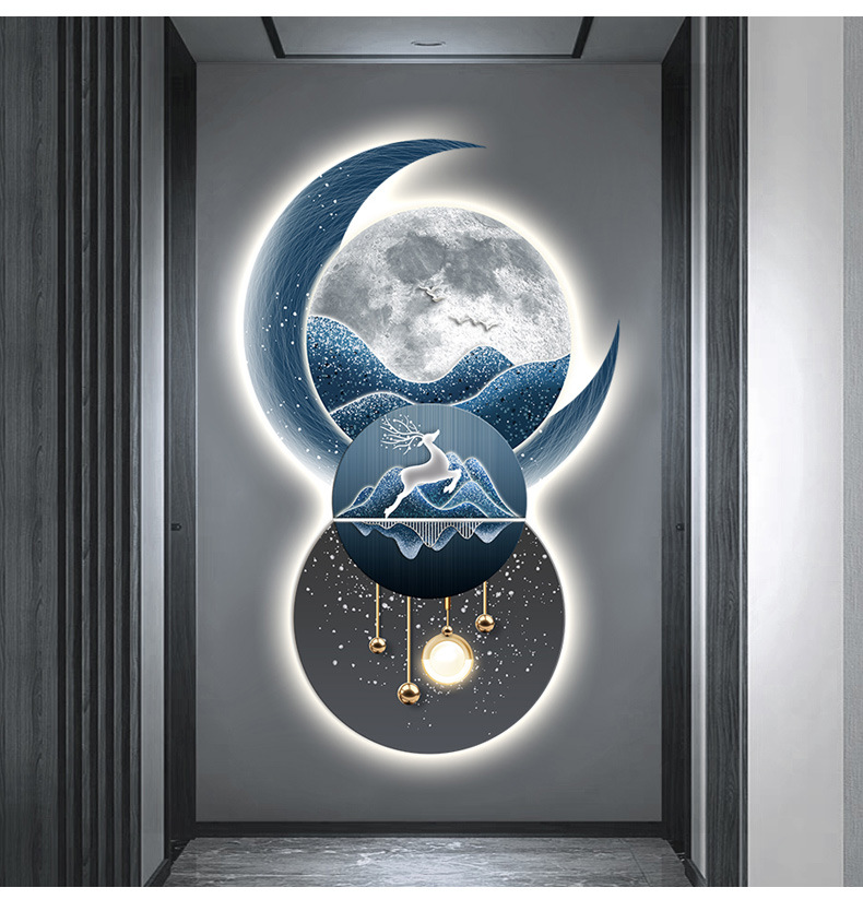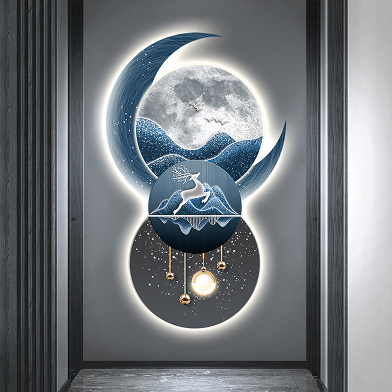 Lối vào hướng về phía cửa hiên bức tranh trang trí lối đi hành lang phòng khách ánh sáng đèn LED phát sáng không khí treo tranh bức tranh tường cảm giác cao cấp