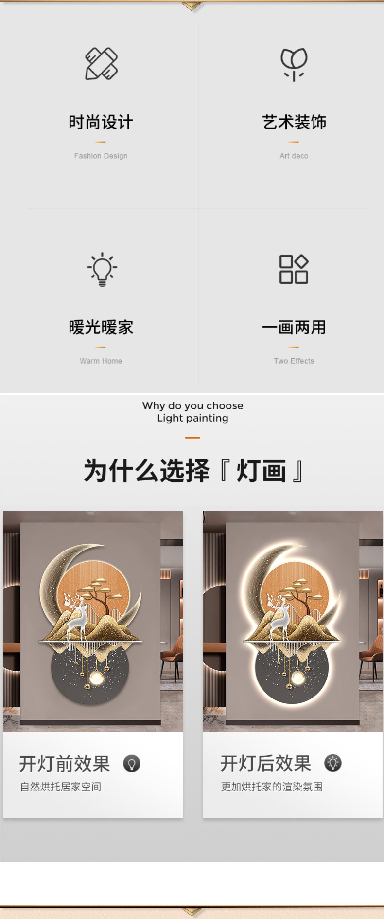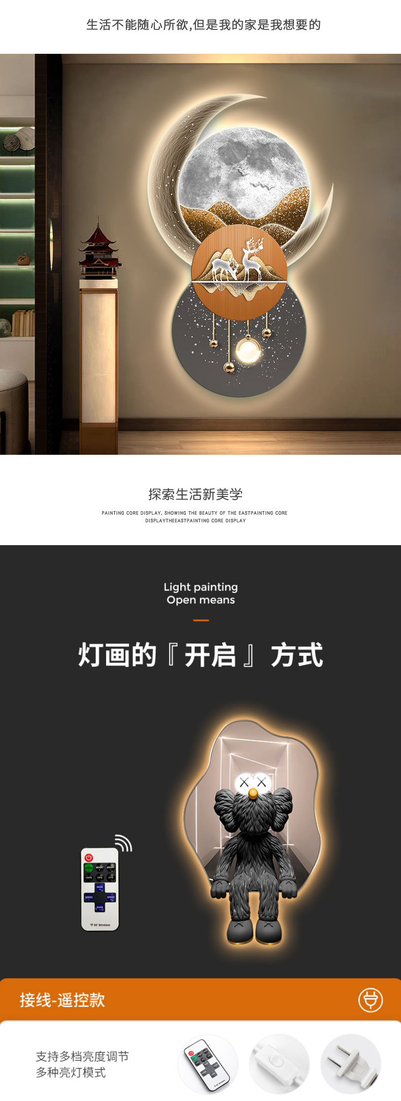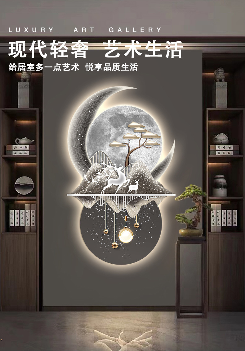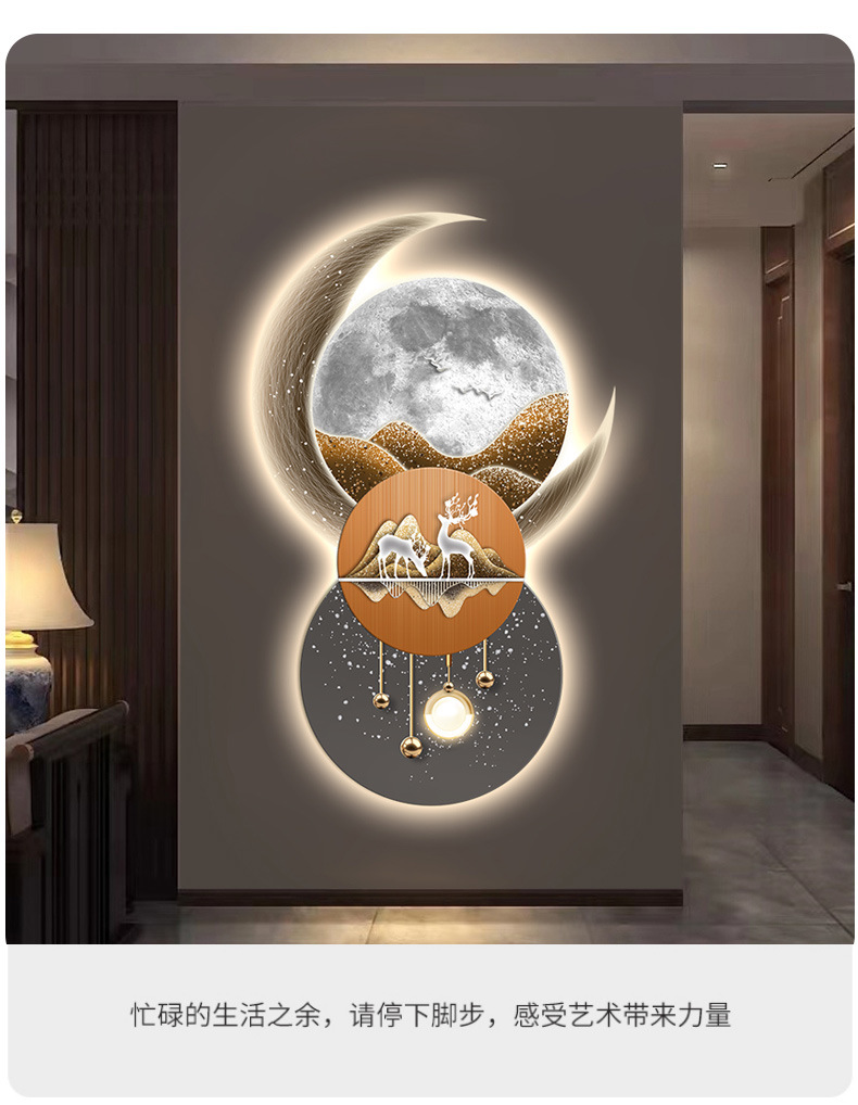 Lối vào hướng về phía cửa hiên bức tranh trang trí lối đi hành lang phòng khách ánh sáng đèn LED phát sáng không khí treo tranh bức tranh tường cảm giác cao cấp