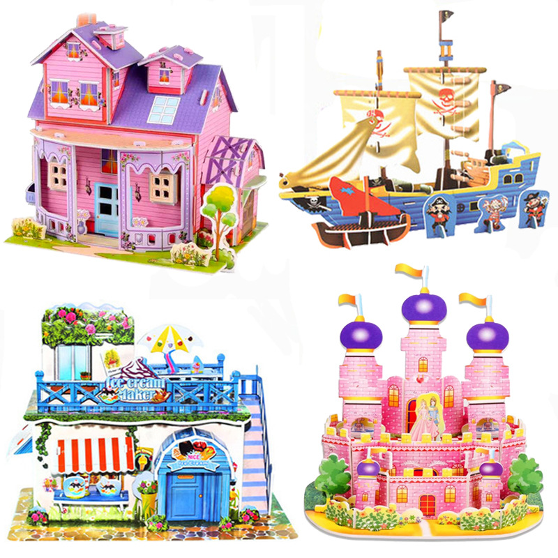 Lớn 4 mảnh ghép hình đồ chơi giáo dục tự làm cho trẻ em 3D ghép hình ba chiều gian hàng đường phố bán chạy nhất bán buôn ngôn ngữ quảng cáo