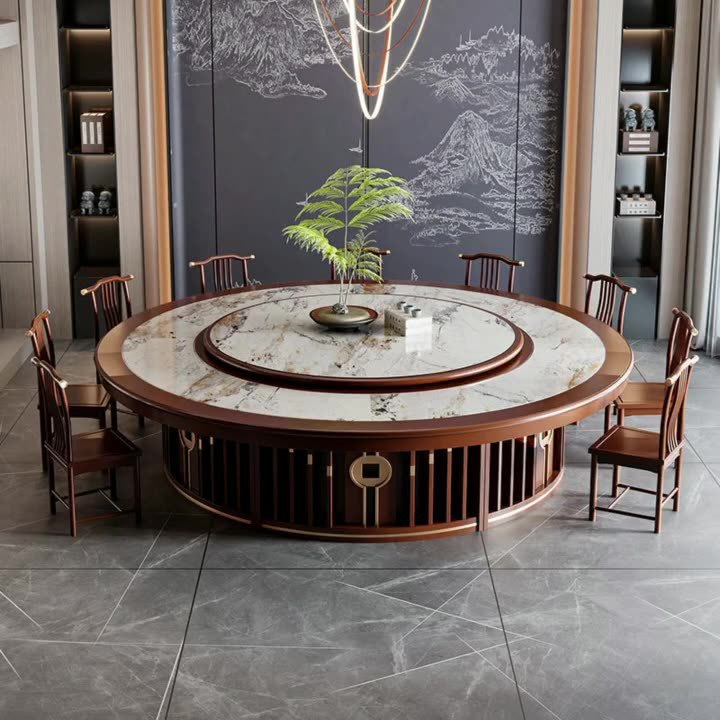 Lớn mới kiểu Trung Quốc điện bàn tròn lớn 20 người Bàn ăn nhà hàng khách sạn gỗ chắc chắn đá cẩm thạch bàn xoay lẩu bàn là sản phẩm nổi bật trong dòng bàn ăn nhập khẩu, thiết kế hiện đại và sang trọng, phù hợp với nhiều không gian nội thất cao cấp.