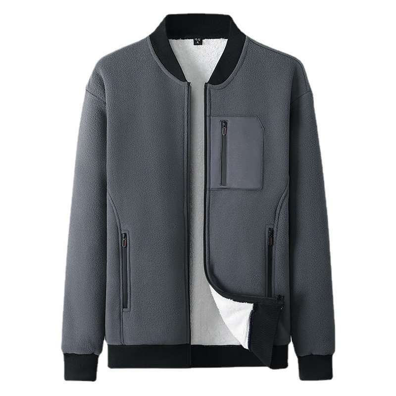 Lông cừu cực cổ áo bóng chày áo khoác nam mùa thu và mùa đông áo khoác thể thao giản dị áo khoác lông cừu dày kích thước lớn hàng đầu quần áo nam