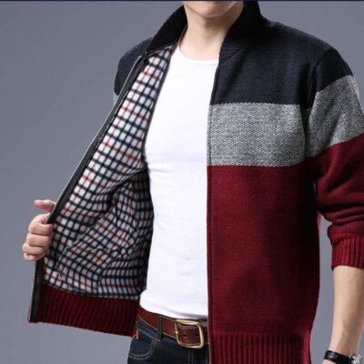 Lông Cừu Dày Áo Len Mùa Đông Nam Áo Len Dệt Kim Áo Len Cardigan Dây Kéo Cổ Bóng Chày Cardigan