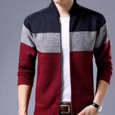 Lông Cừu Dày Áo Len Mùa Đông Nam Áo Len Dệt Kim Áo Len Cardigan Dây Kéo Cổ Bóng Chày Cardigan