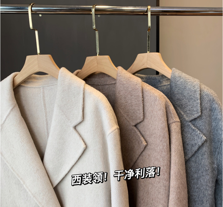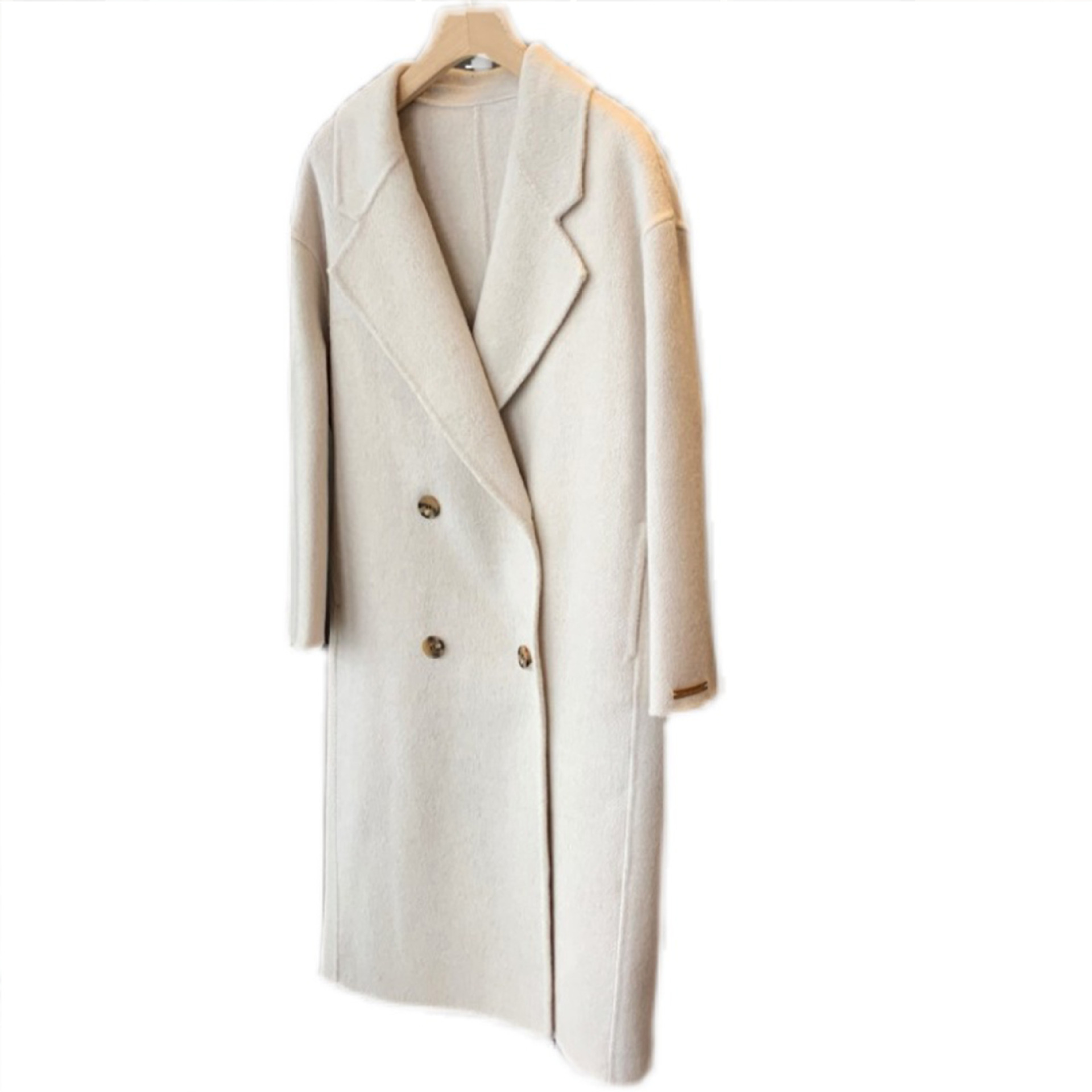 Lông lạc đà đơn hỗn hợp len hai mặt áo khoác nylon mùa thu và mùa đông mới áo khoác len hai hàng khuy áo khoác nữ dài vừa phải