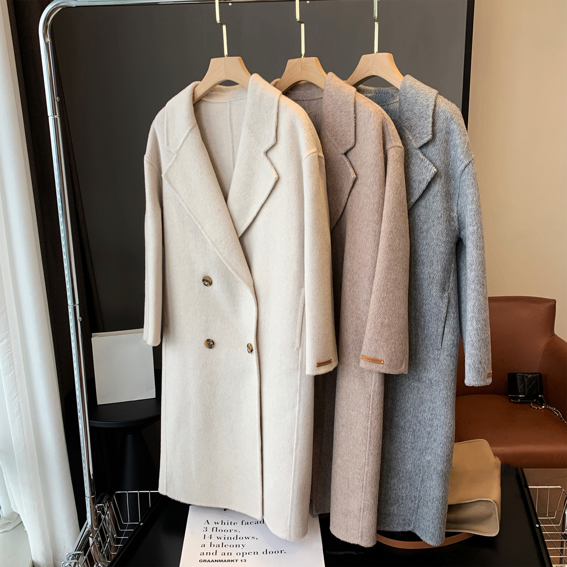Lông lạc đà đơn hỗn hợp len hai mặt áo khoác nylon mùa thu và mùa đông mới áo khoác len hai hàng khuy áo khoác nữ dài vừa phải