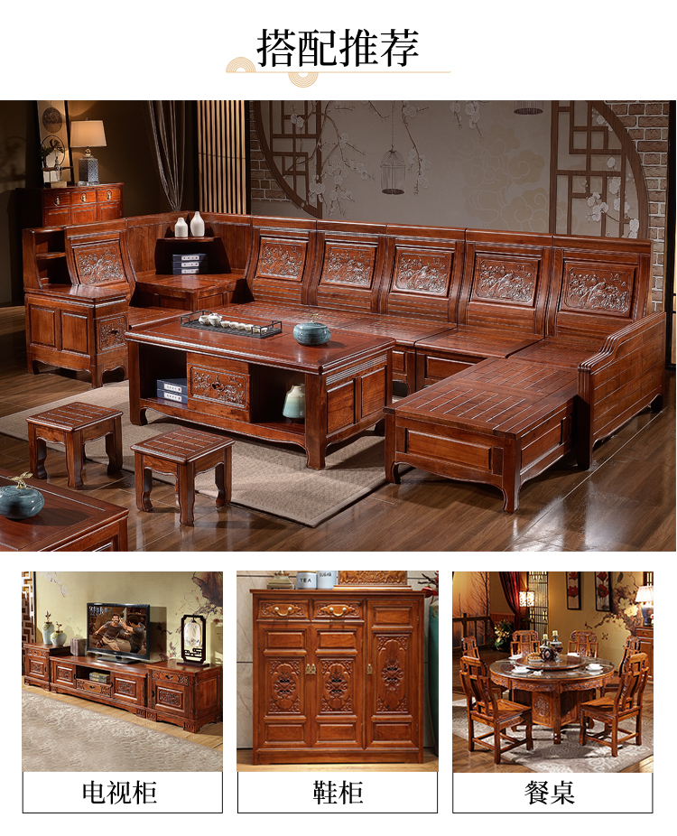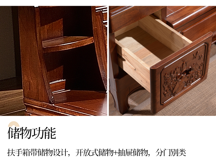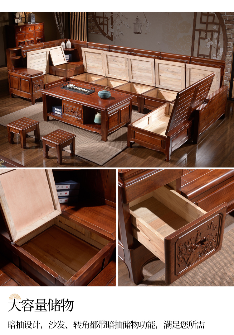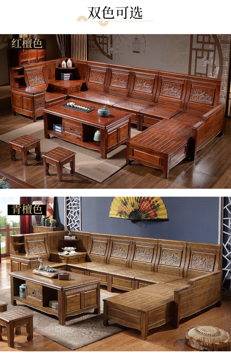 Long não gỗ tất cả các ghế sofa gỗ rắn Đồ nội thất Trung Quốc phòng khách mùa đông và mùa hè sofa cổ sofa lưu trữ gia đình kết hợp sofa