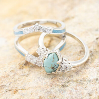 Longrui xuyên biên giới thời trang châu Âu và châu Mỹ bán chạy nhất nhẫn ngọc lam nạm kim cương bộ ba món bán trực tiếp tại nhà máy