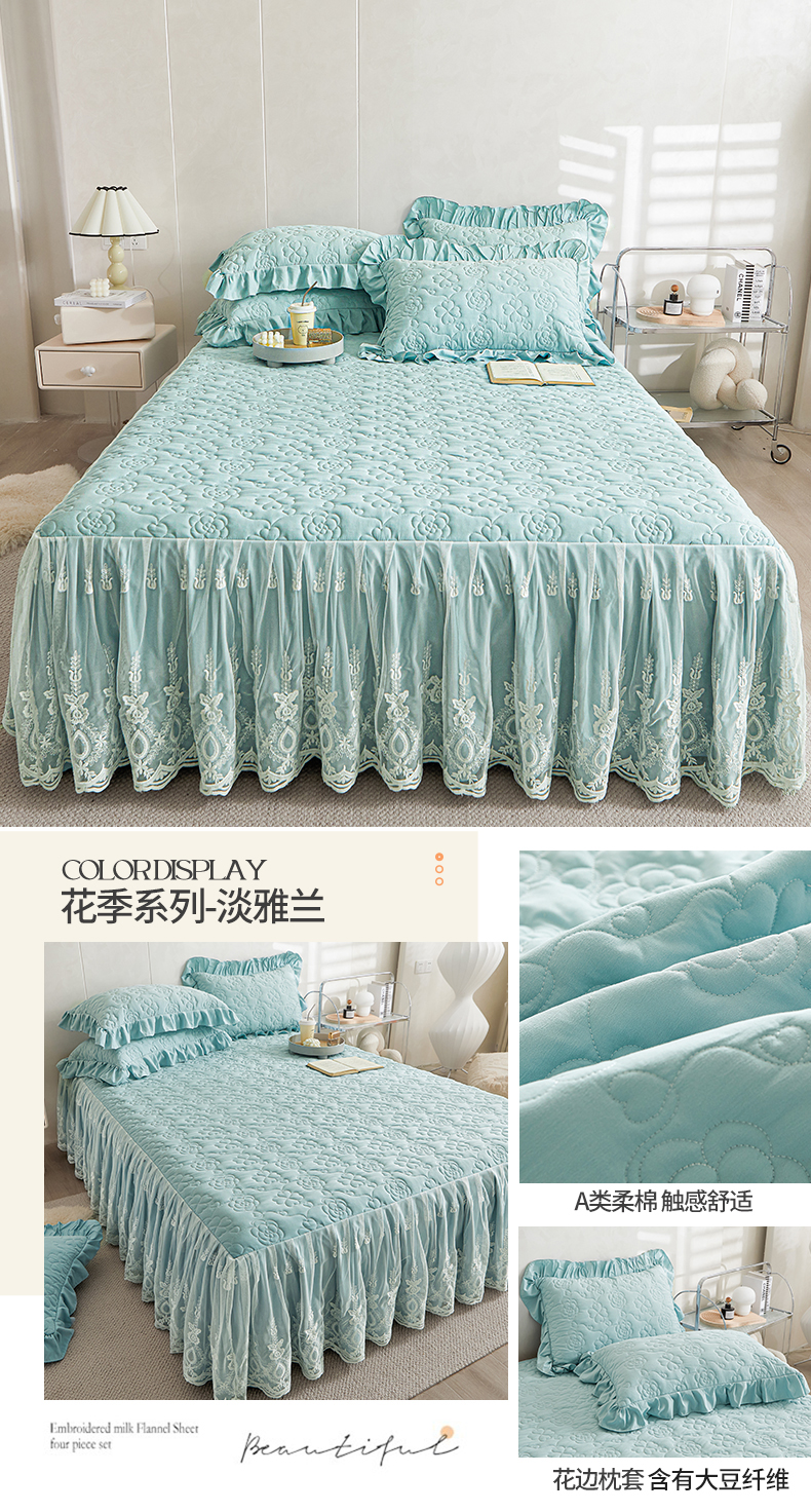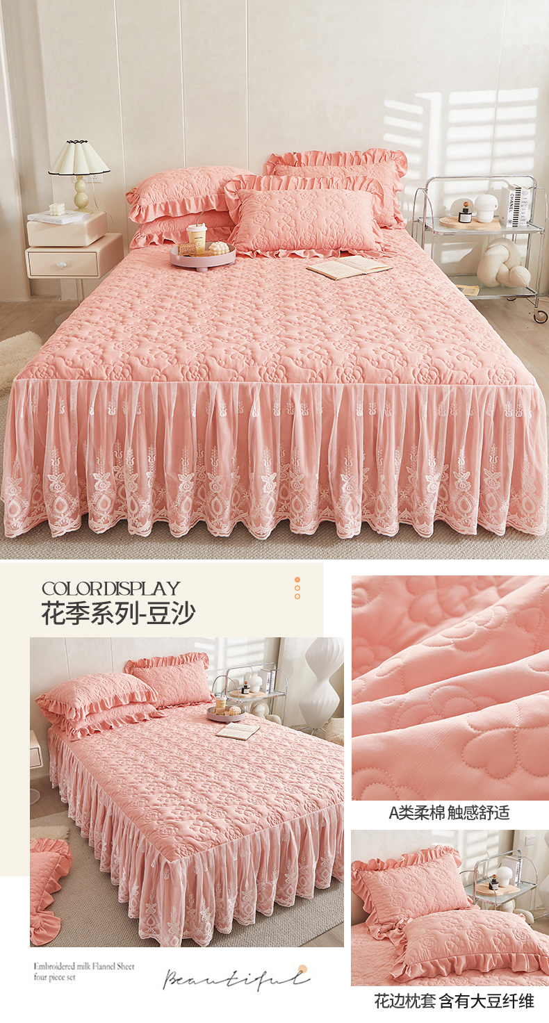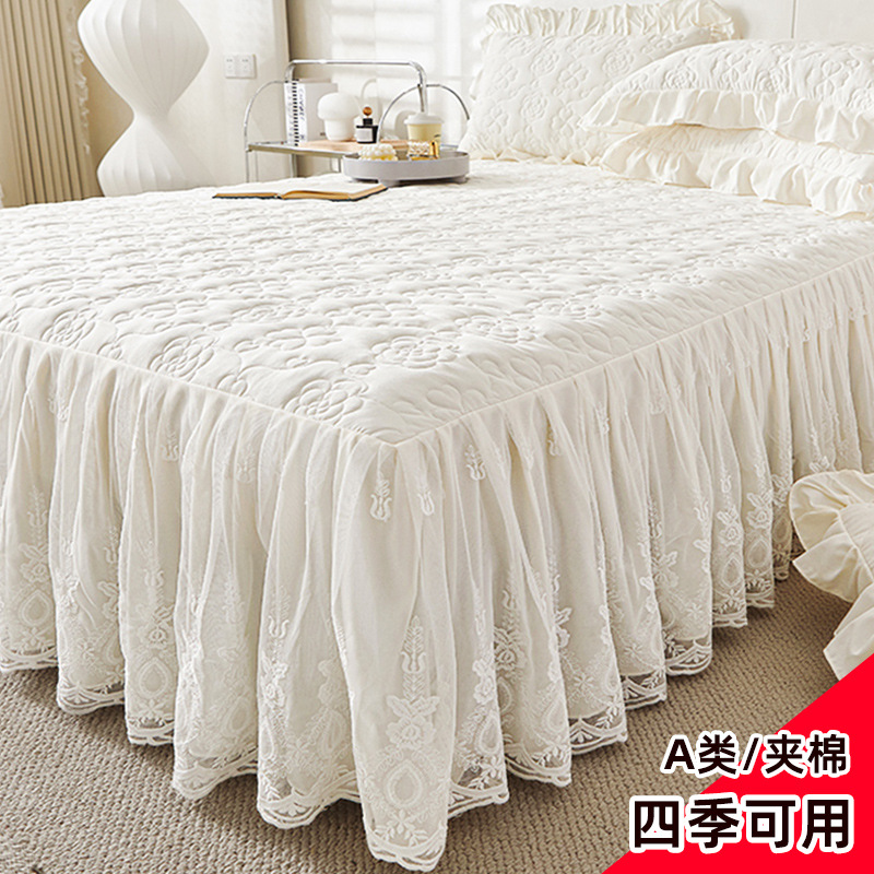 Lớp MỘT giường váy 2023 mới váy chần bông dày bốn mùa đa năng giặt sạch cotton công chúa gió một mảnh trải giường