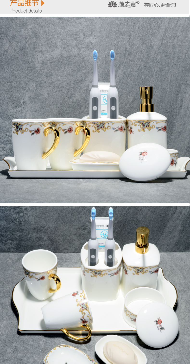 Lotus Lotus Bàn chải đánh răng Bàn chải đánh răng Nước súc miệng Cốc bàn chải đánh răng Bàn chải rửa nhà vệ sinh Bộ ánh sáng Phòng tắm sang trọng Đồ dùng phòng tắm năm món