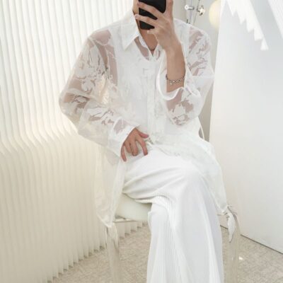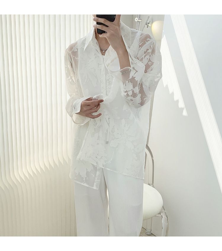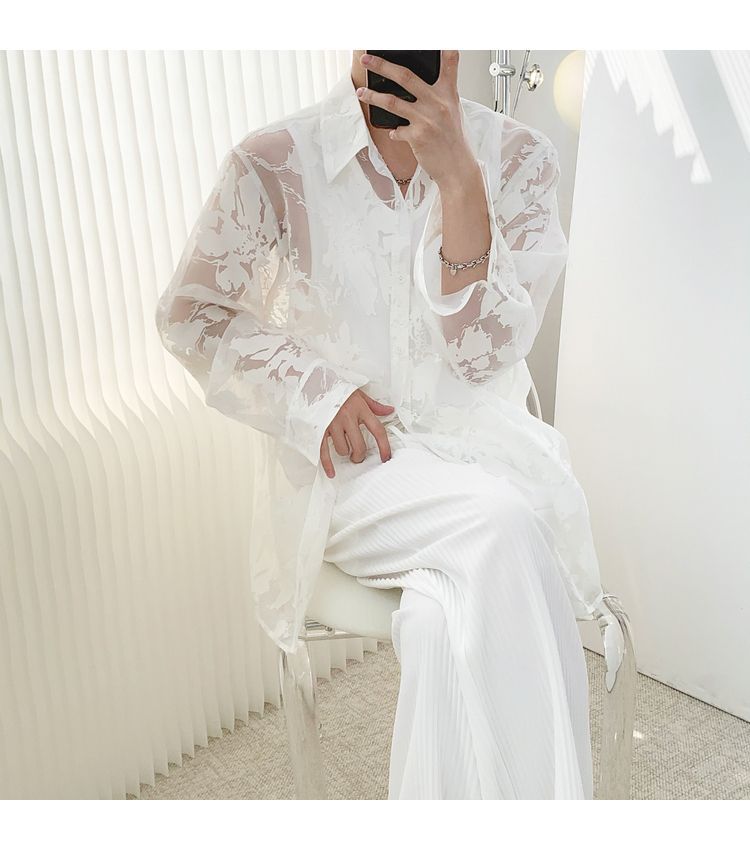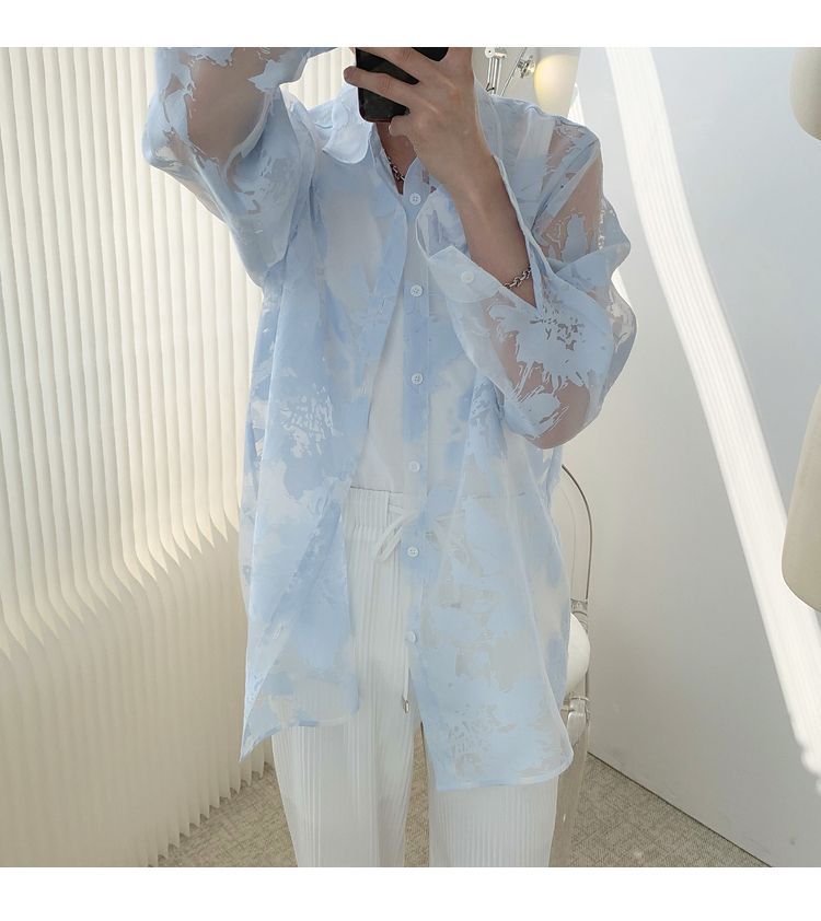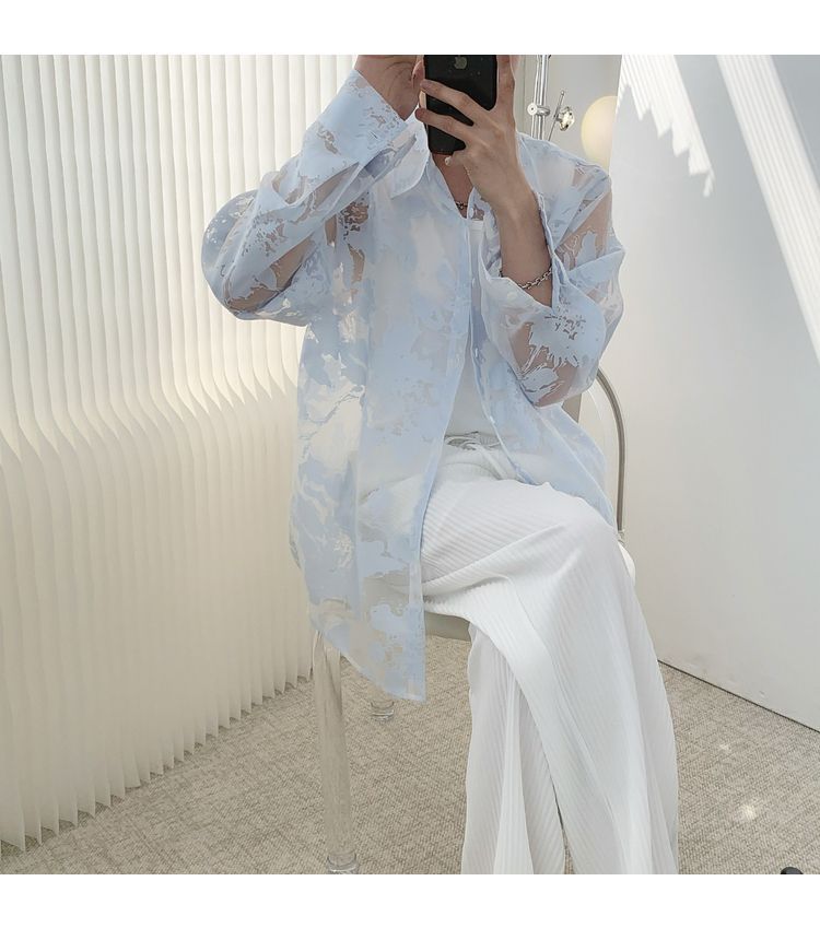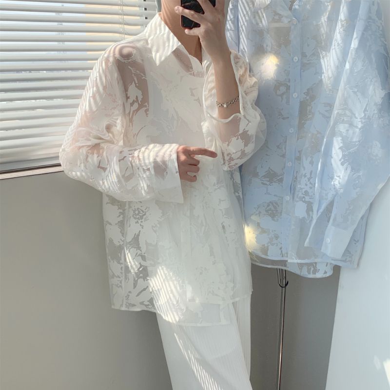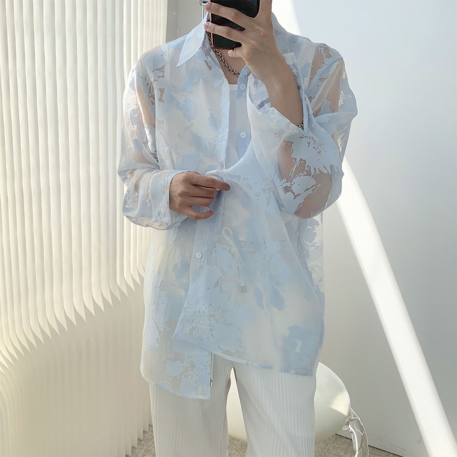 Lụa băng mỏng phần dài tay côn đồ đẹp trai đổ xô chống nắng áo sơ mi nam mùa hè ins thiết kế hợp thời trang cảm giác thích hợp áo sơ mi