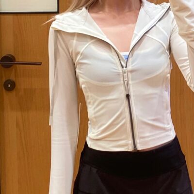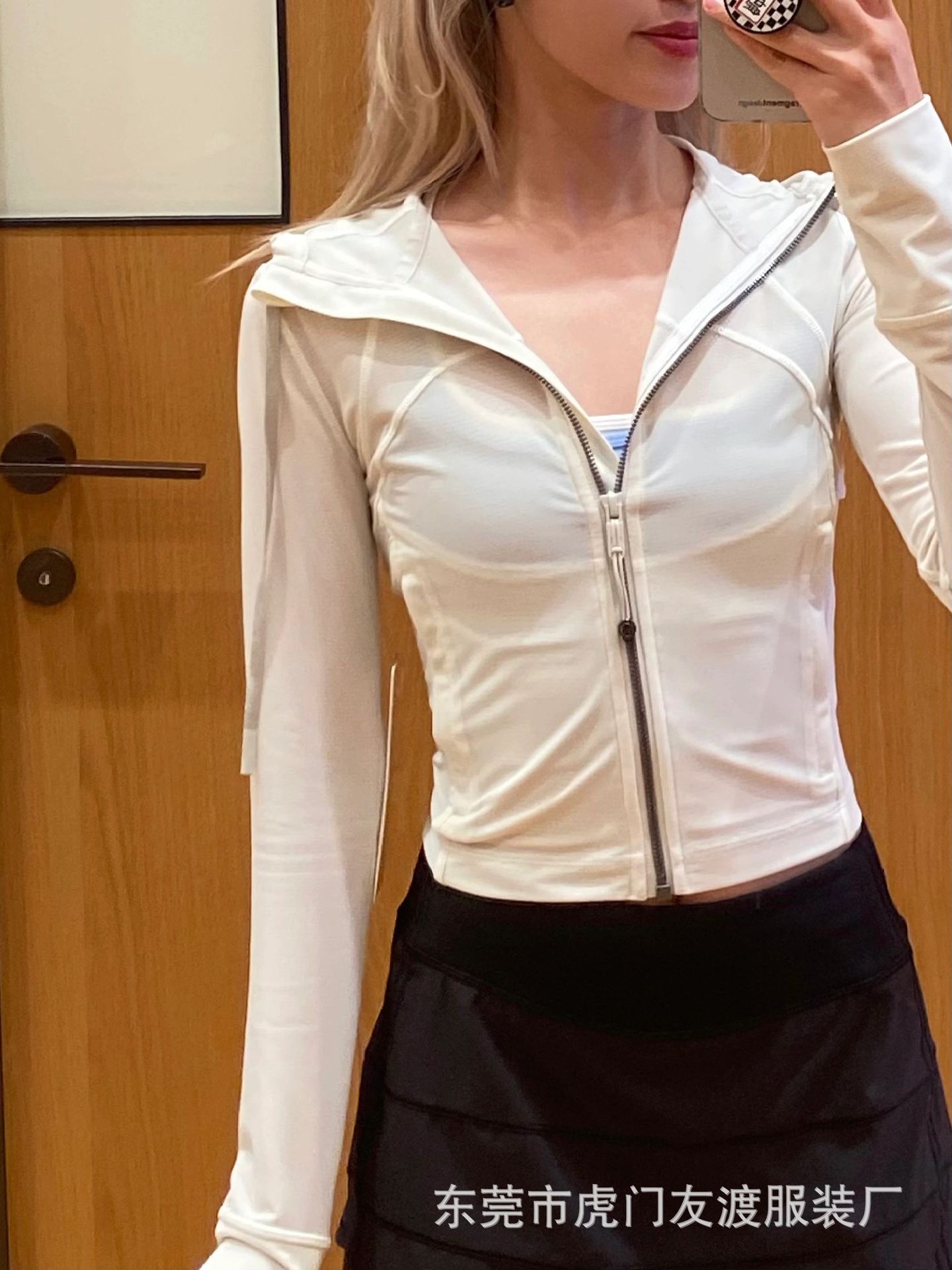 Lulu Define Lưới nữ có mũ ngắn áo tập thể dục yoga quần áo trên lưới chống nắng áo khoác mỏng
